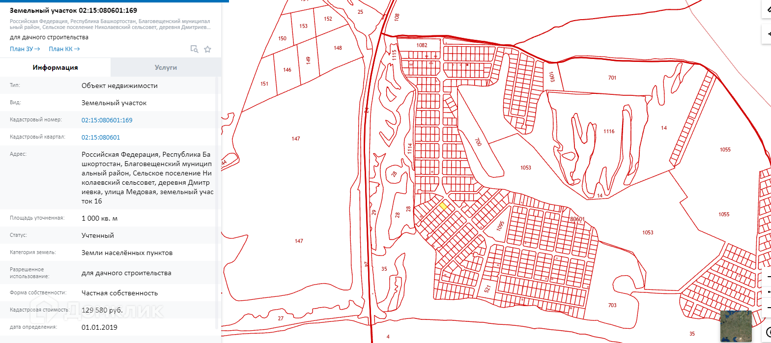 Кадастровый номер участка 02:15:080601:169.