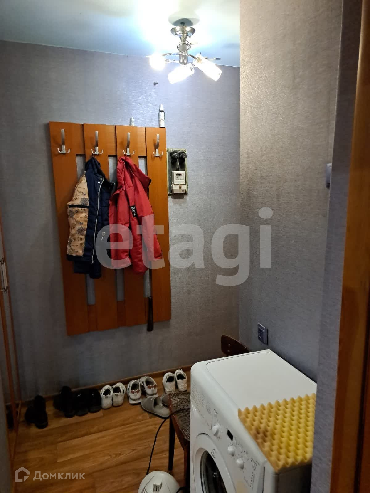 В прихожей встроенный шкаф.