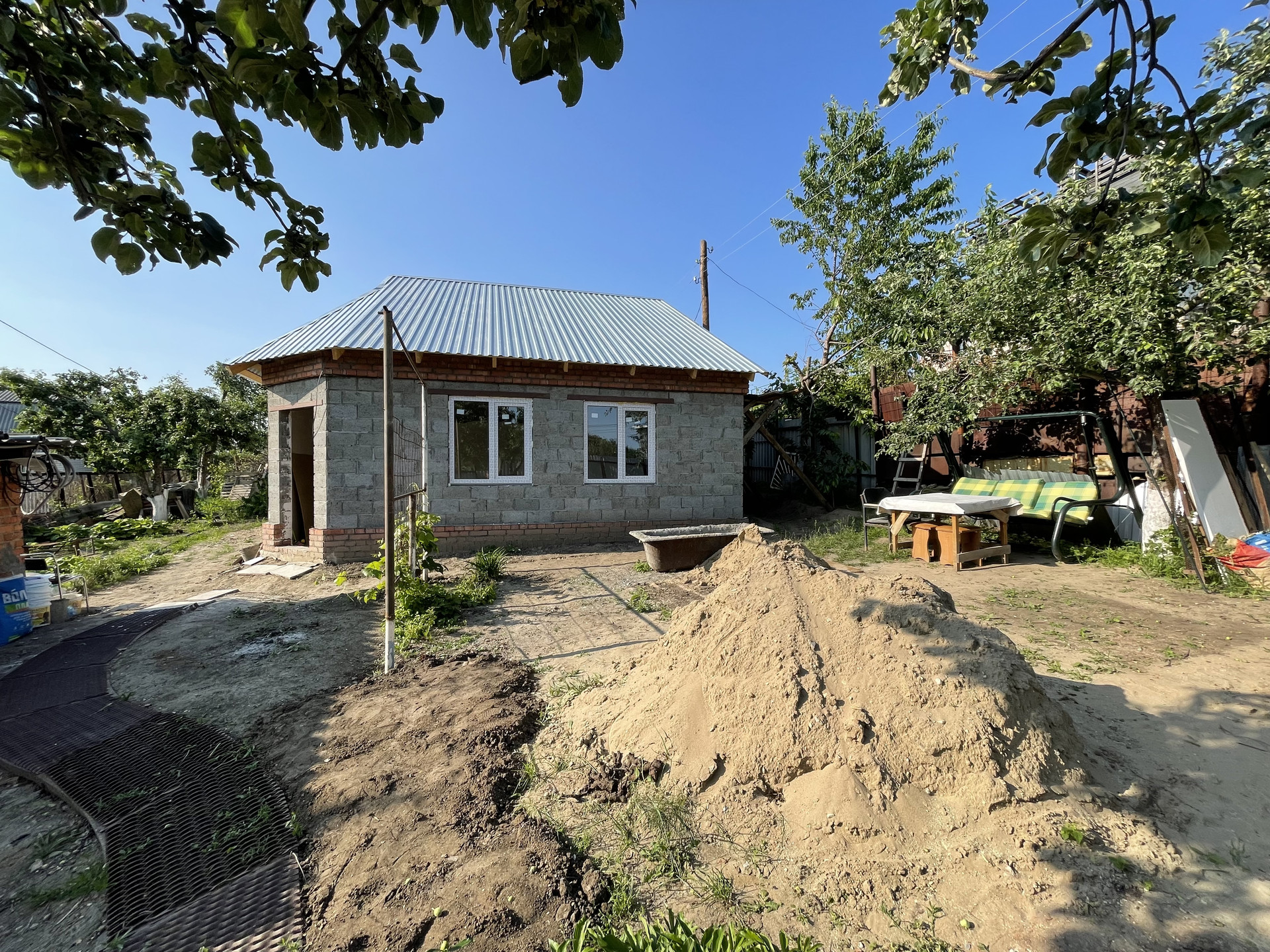-2 комнаты готовы к проживанию. на кухне остается покрасить стены, на всех стенах на несена декоративная штукатурка, постелить линолеум, он имеется новый. В ванне остается покрасить стены. Фасад покрасить. Частично выровнен участок, земля есть для дальнейшего выравнивания. По договоренности могу помочь доделать ремонт и выровнять до конца участок.