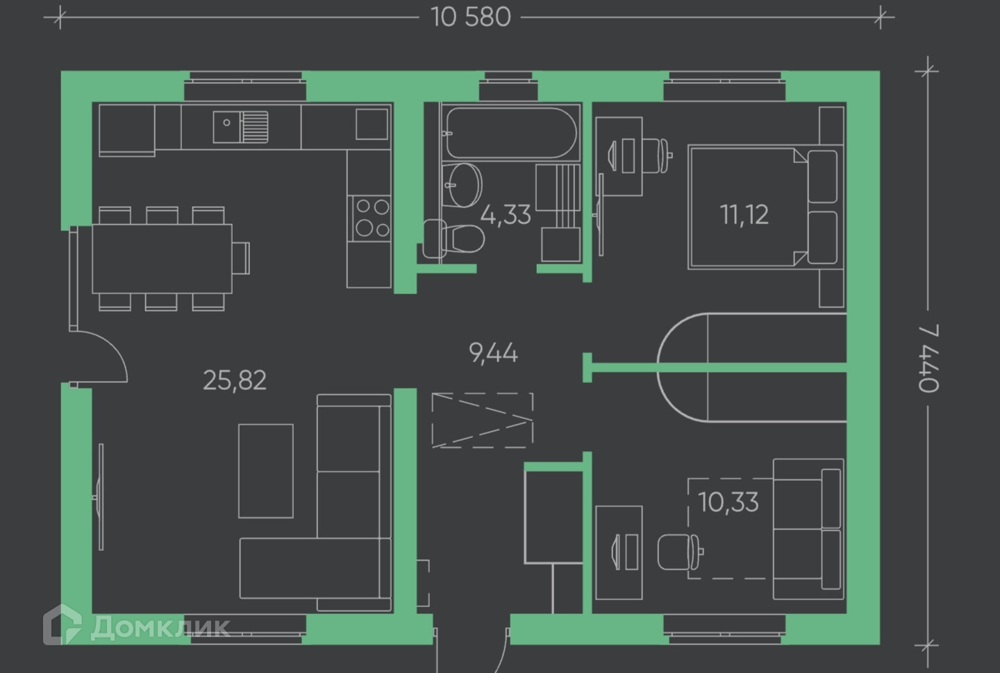 Общая площадь 73 м2
