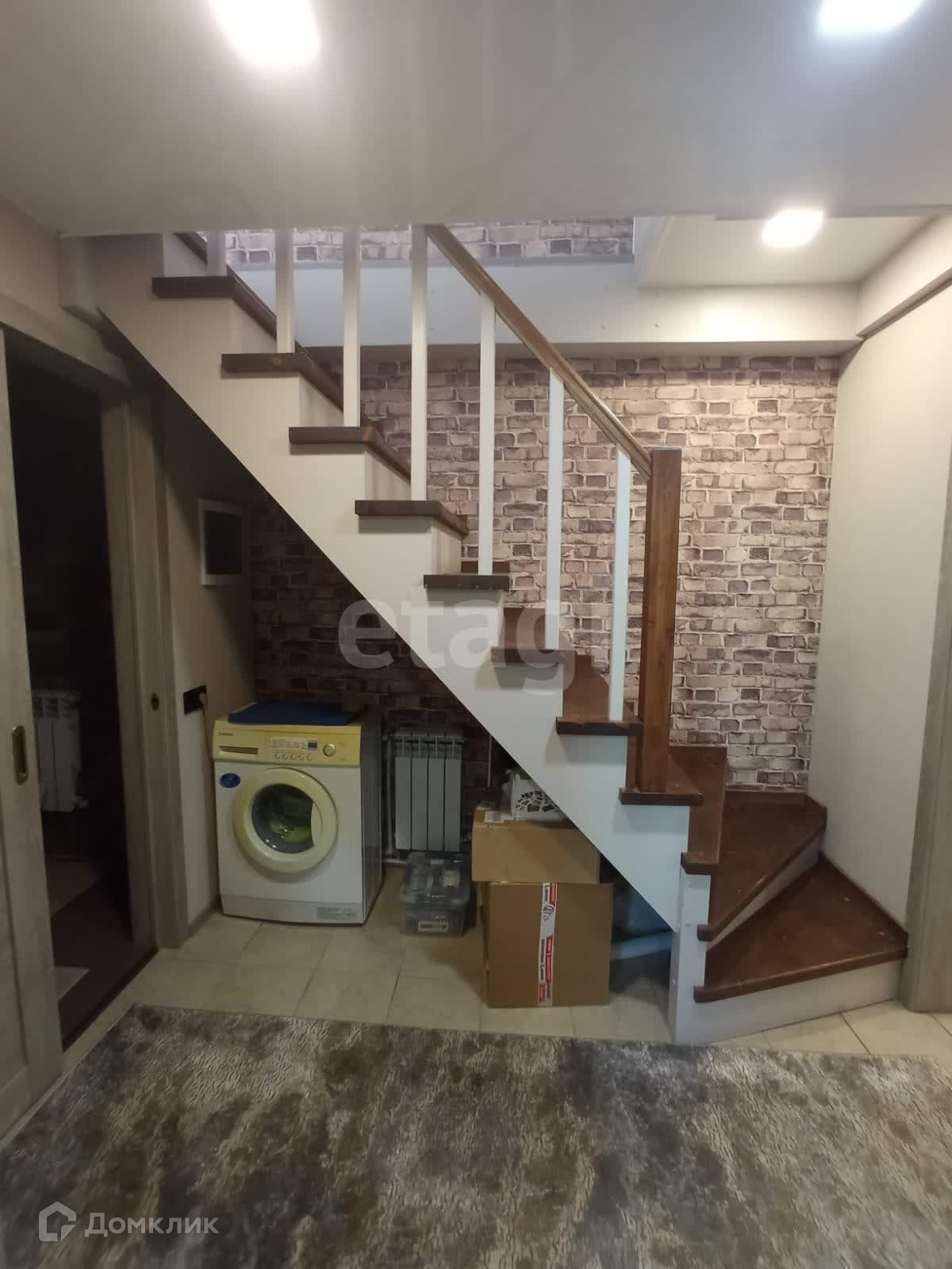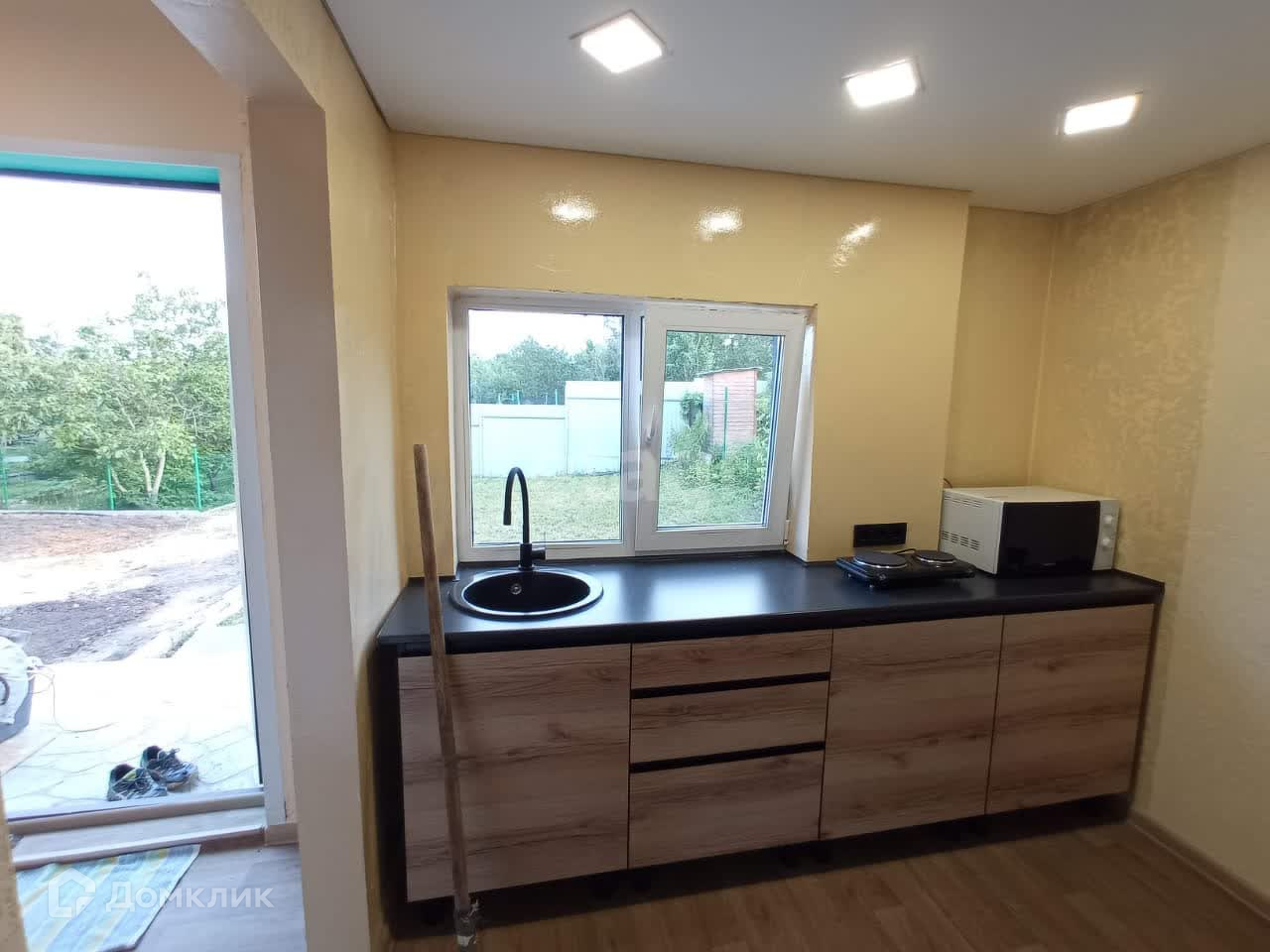 На первом этаже:кухня-гостиная 16м2, теплый водяной пол, спальня 12м2, совмещённый санузел.