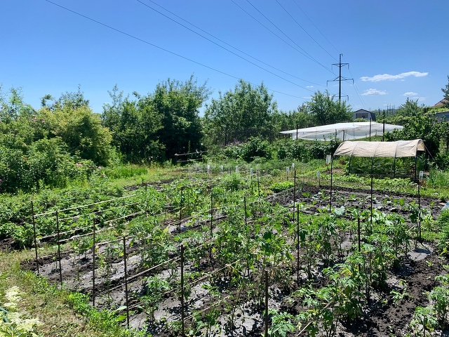 Участок ровный, огороженный, ухоженный. На участке: клубника, помидора, перец, картошка, виноград. Из плодовых деревьев:2 яблони, абрикос, черешня, торн, слива, тутовник, облепиха, черноплодная рябина, малина, крыжовник красная и черная смородина.
