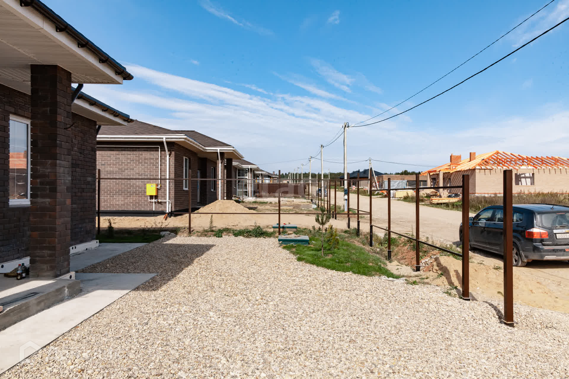 Участок ровный. Расположение дома на участке позволяет организовать комфортные парковочные места внутри своей территории, а не за ее пределами.