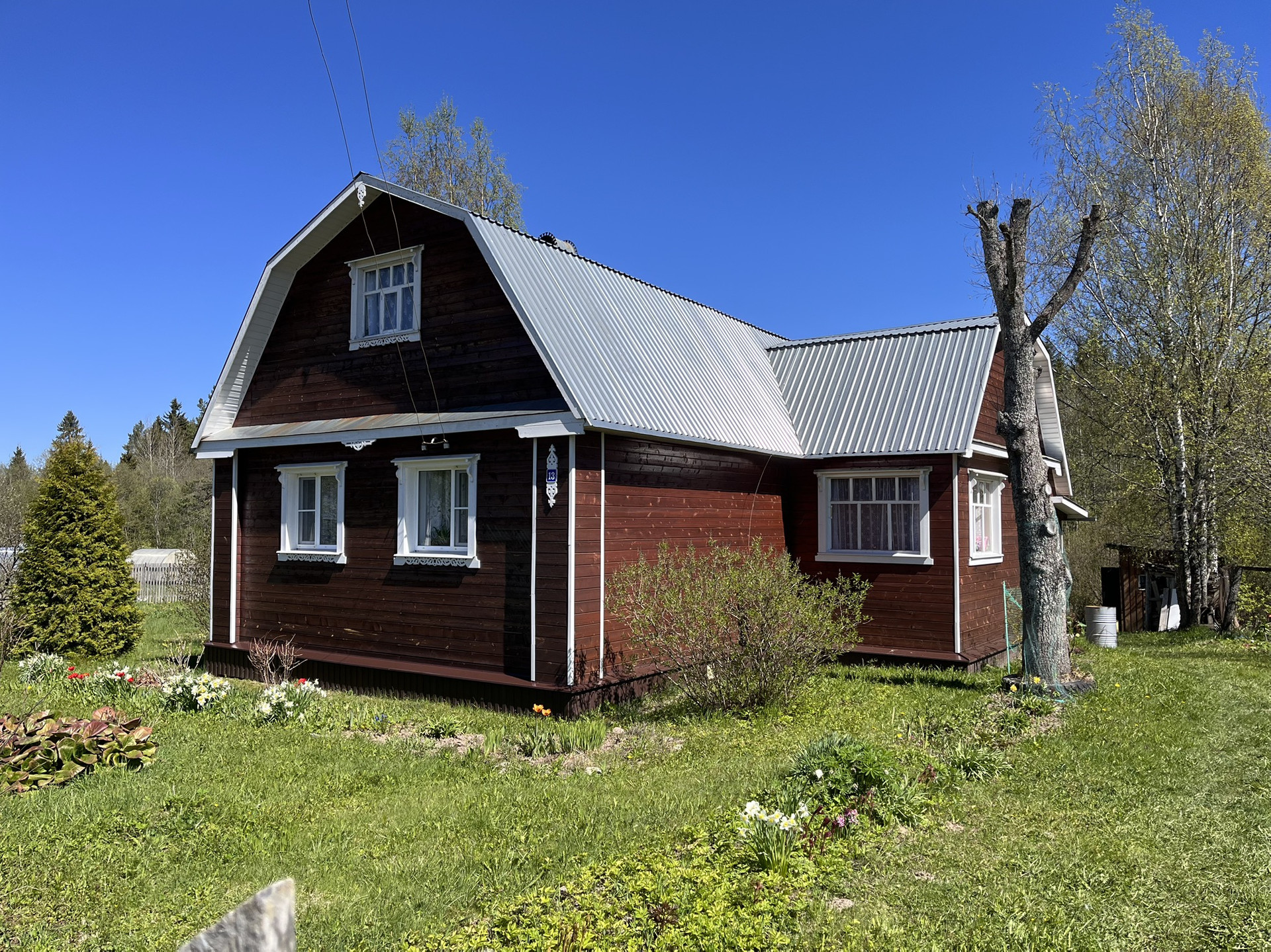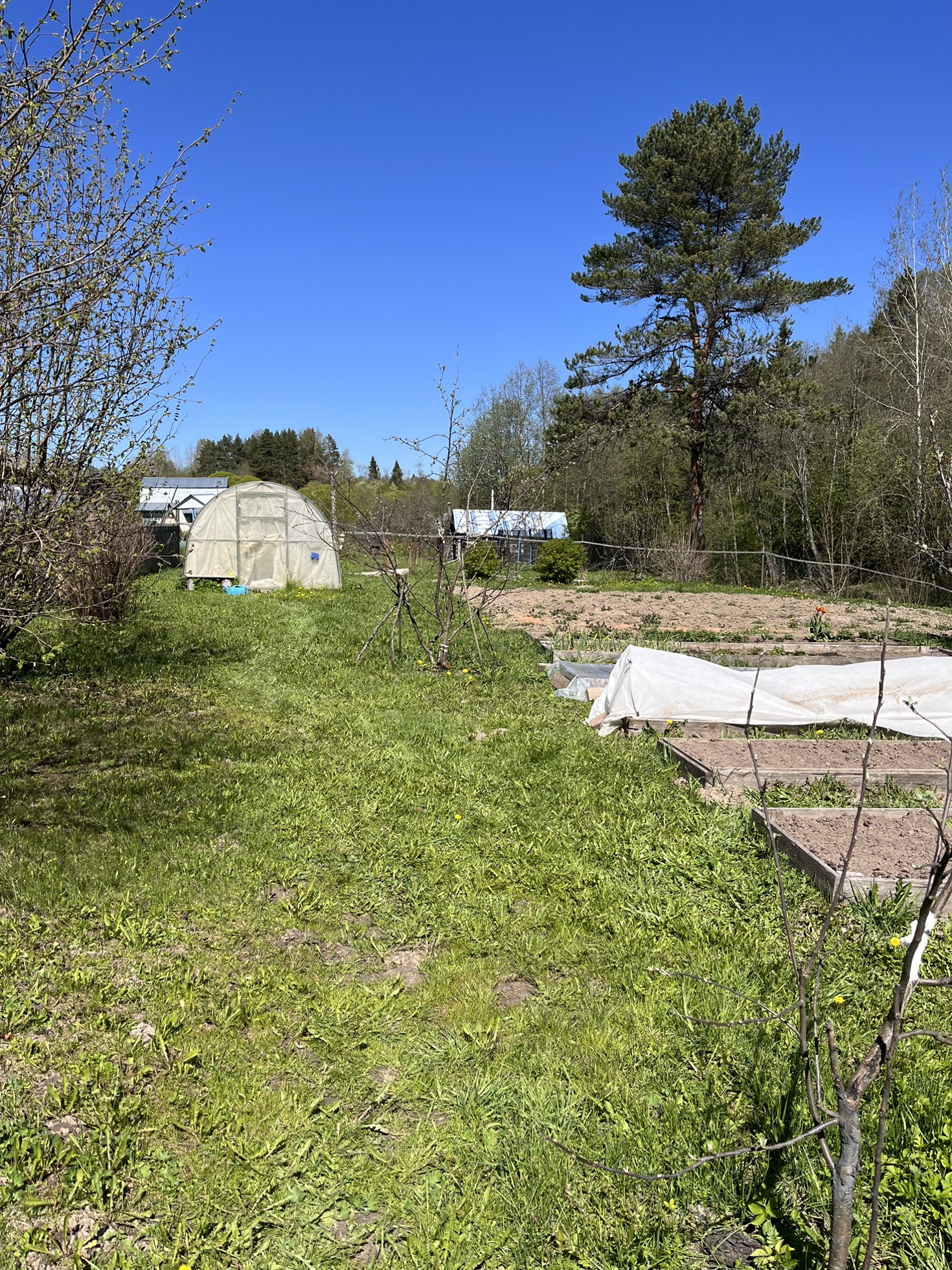Участок 29 соток, разработан, есть две теплицы, хозпостройки, баня.