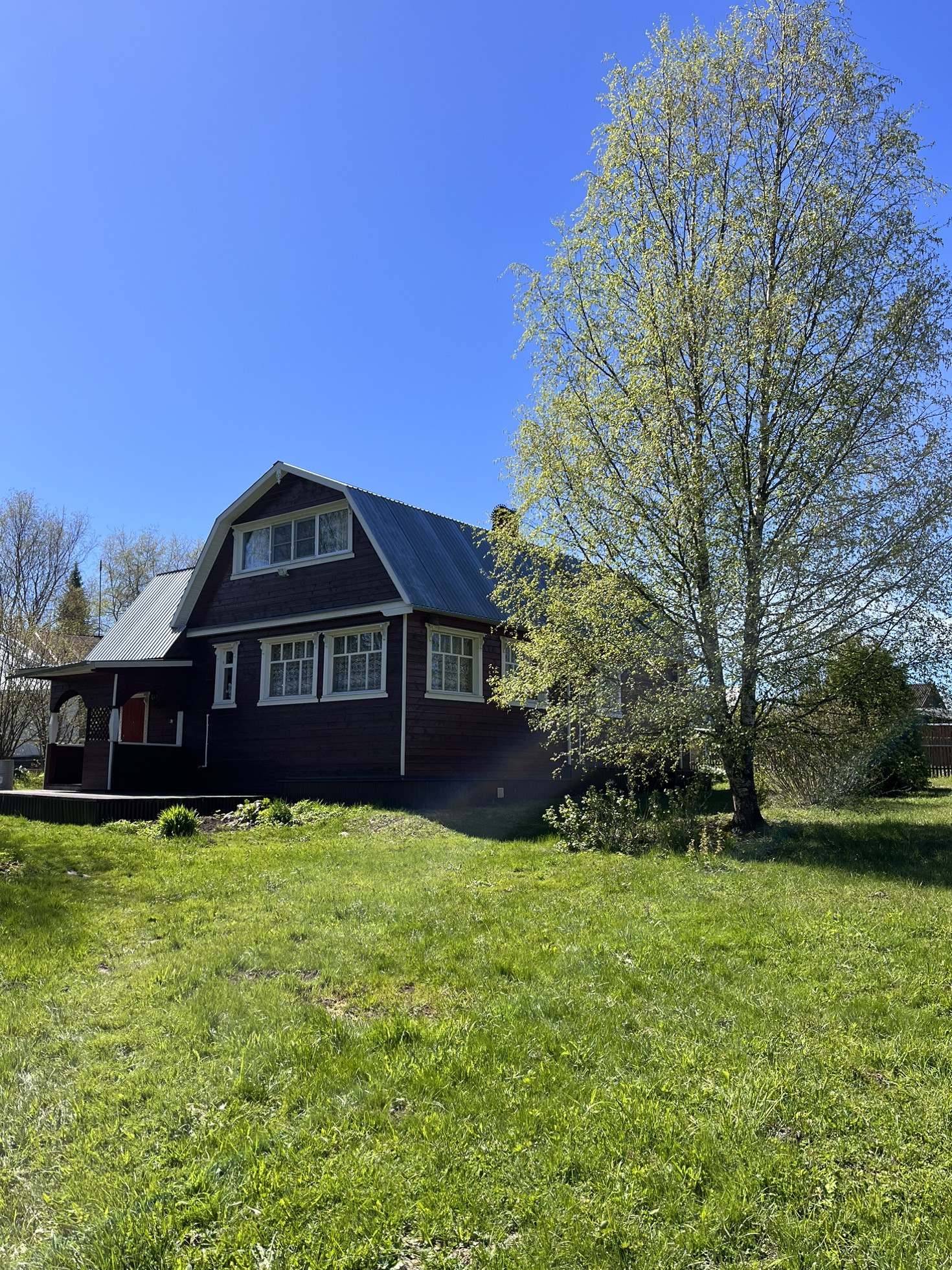 В доме большая кухня гостиная, две спальни, большое пространство на мансардном этаже, можно оборудовать ещё две комнаты.
