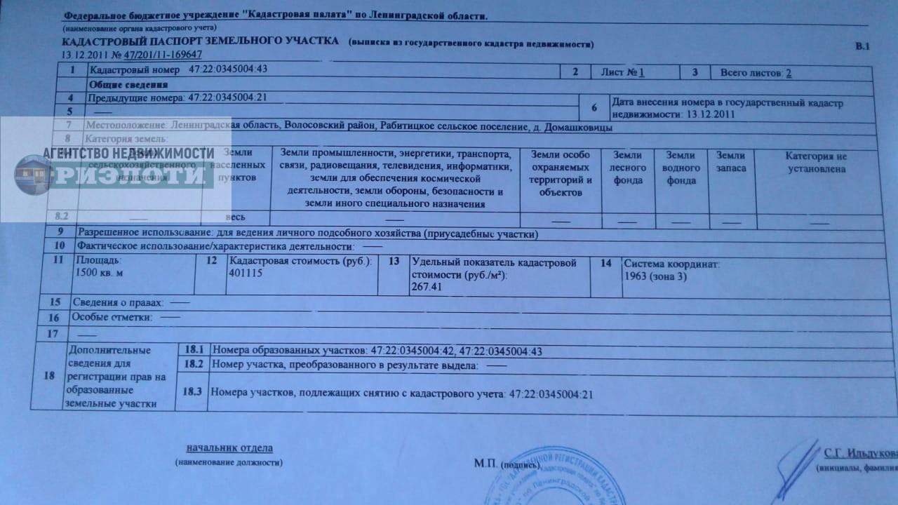 Продается земельный участок в д. Домашковицы Волосовского района Ленинградской области. Площадь участка - 1500 кв.м., назначение земель - ИЖС.