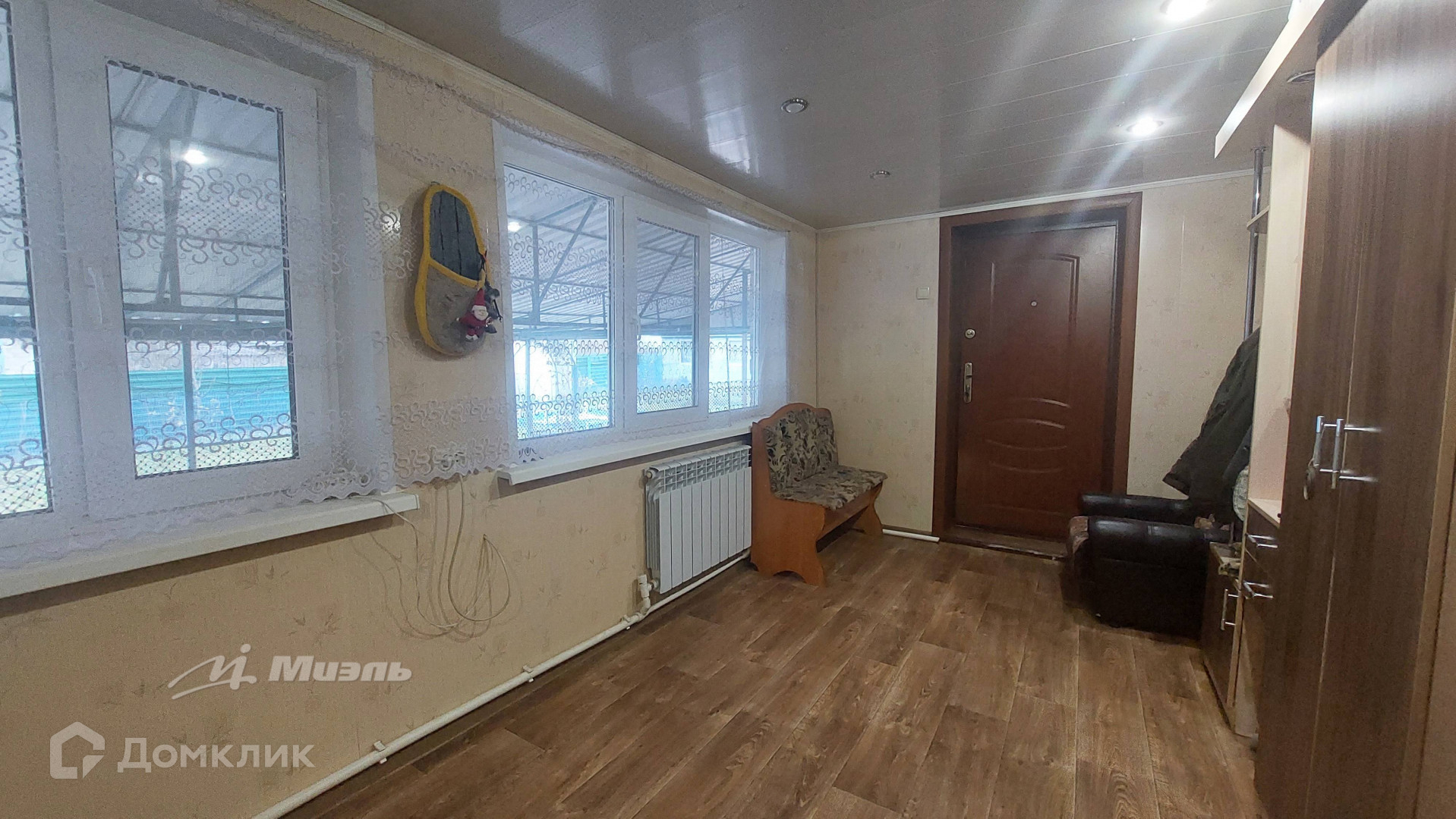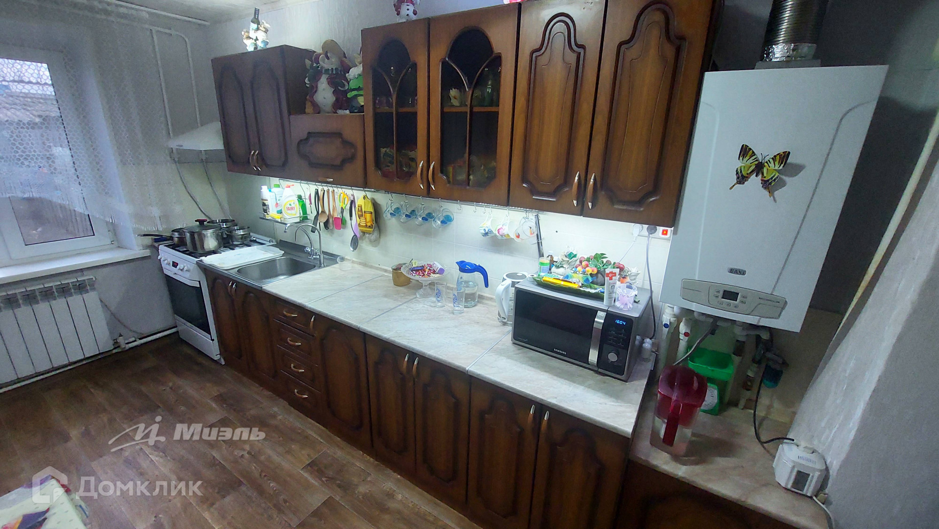 В доме сделан косметический ремонт. 3 жилых (просторных) комнаты. Имеется сплит система (Hisense), которая работает как на холод так и на тепло. На полу на кухне и в прихожих линолеум, а жилых комнатах ковролин. Установлены межкомнатные двери, биметаллические радиаторы. Окна ПВХ. Все удобства в доме: отопление газовое (установлен двухконтурный котел фирмы Baxi), центральное водоснабжение и канализация, свет.