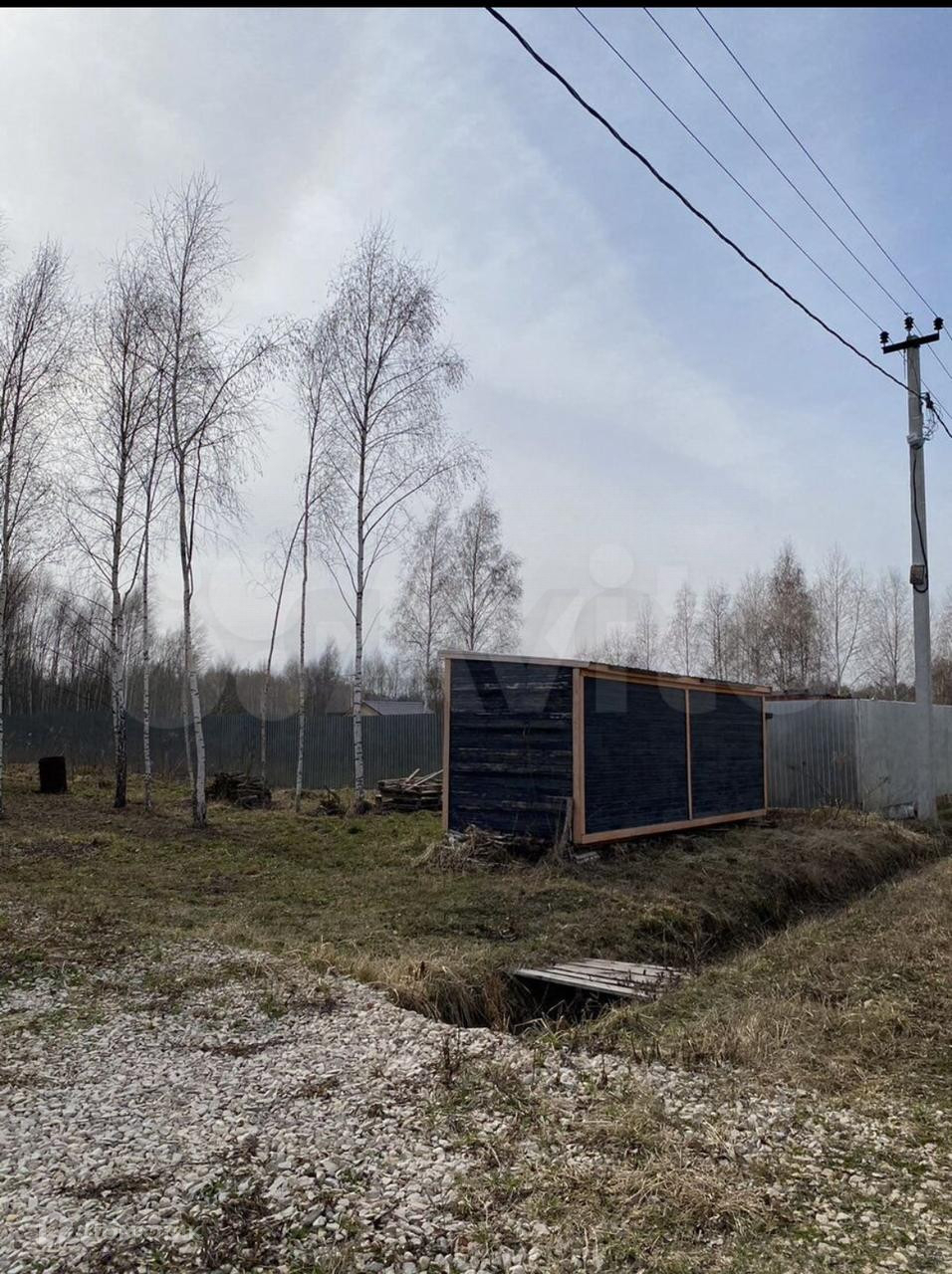 На участке стоит оборудованная бытовка, туалет, сделан заезд под машину.