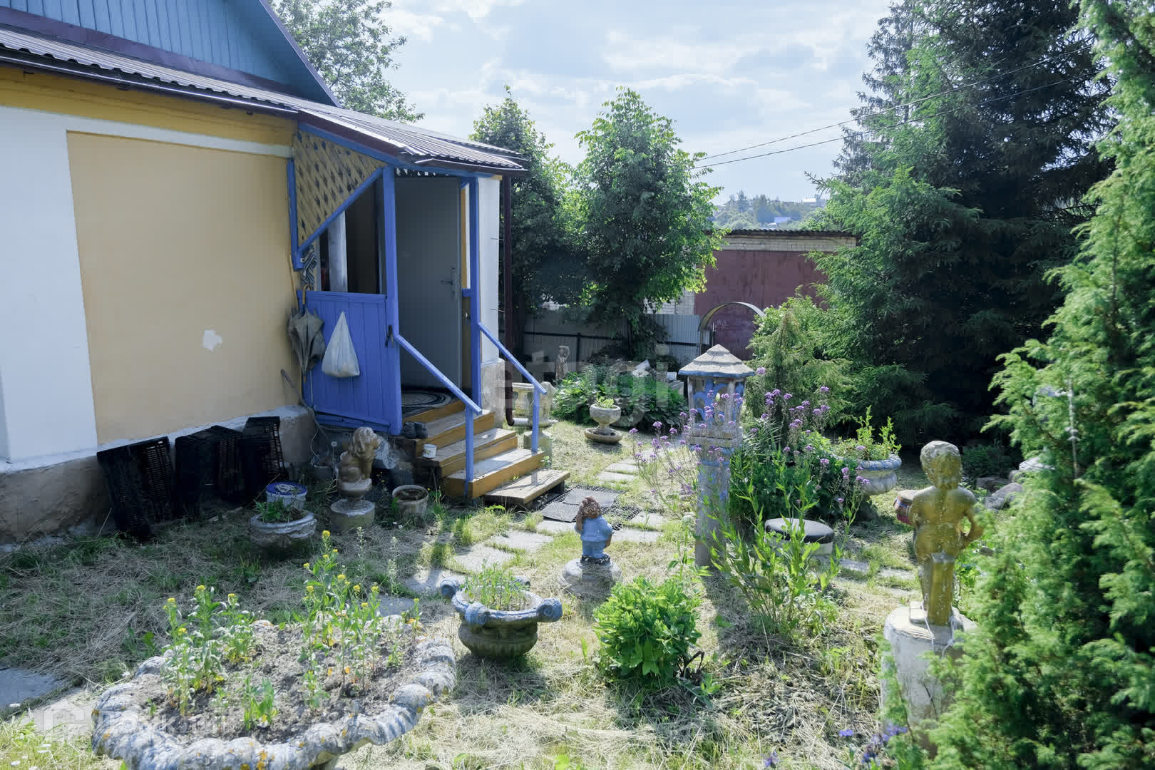 Большой участок земли отведён под огород, гараж, сарай, летний душ с бочкой, два туалета, сельского типа, теплица из поликорбоната, плодовые деревья и плодородная земля. Много полезной площади земли.