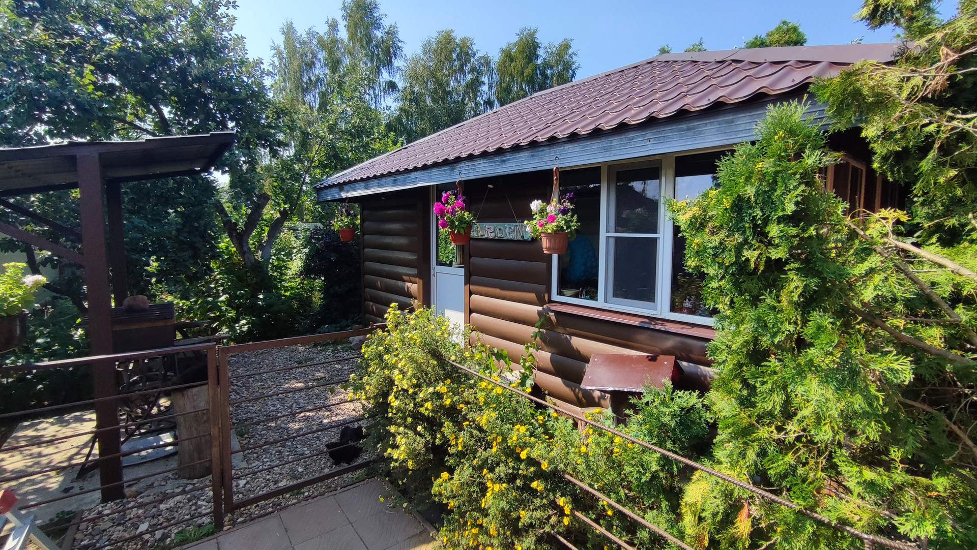 Участок: 14,4 сотки, правильной прямоугольной формы, с выходом и заездом на две стороны, полностью огорожен, от дороги 2 линия, подъезд круглогодичный, улица тупиковая, не проездная, тихая. На участке: капитальный теплый кирпичный гараж 12х5м. с большим чердачным помещением, на два автомобиля, автоматические ворота и стеллажи, большая закрытая теплая беседка, мангал под крышей, закрытая летняя кухня, действующая большая бревенчатая баня 6х6м. (парилка, помывочная, комната отдыха, веранда), газон для игр и отдыха, место под бассейн, теплицы, вольер для собаки, плодовый и ягодный сад, цветники, огород с высокими грядками, виноградник, 5 метровые туи, вымощенные дорожки.