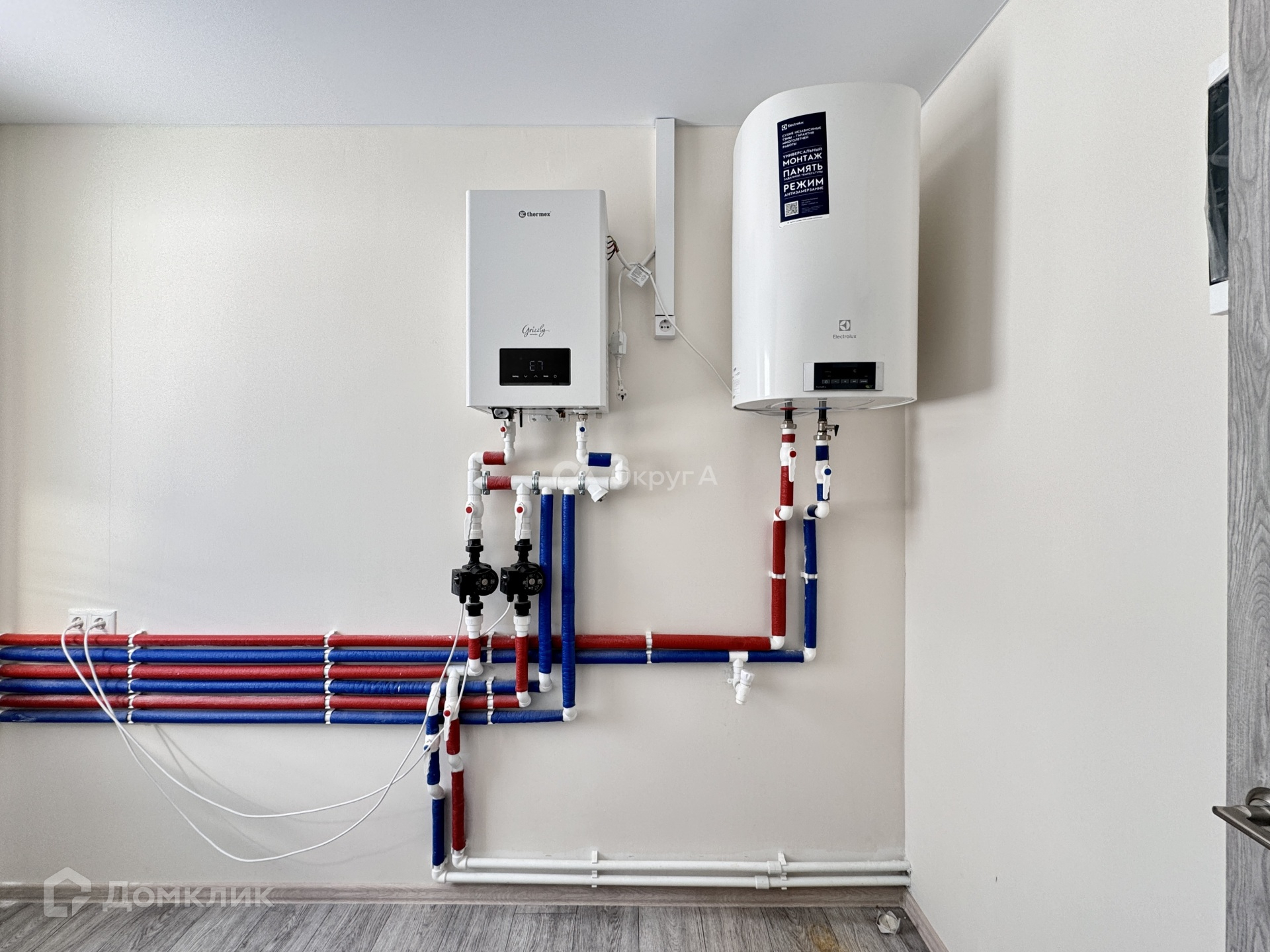 Электричество 15кВт, вода - скважина (120м), канализация - септик, ГАЗ по границе участка. Все коммуникации заведены в дом и разведены по дому. Установлены электрический котёл Thermex, бойлер Electrolux на 80л, радиаторы фирмы Royal Thermo Compact . Организовано уличное освещение.