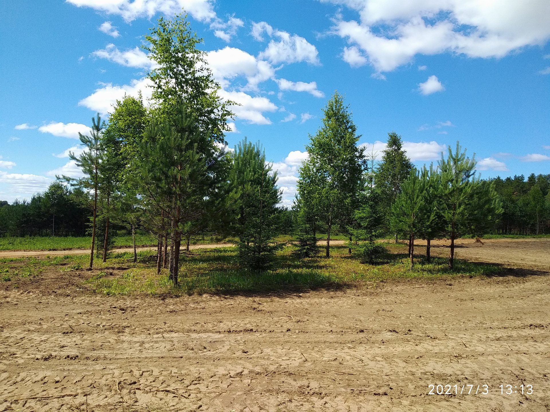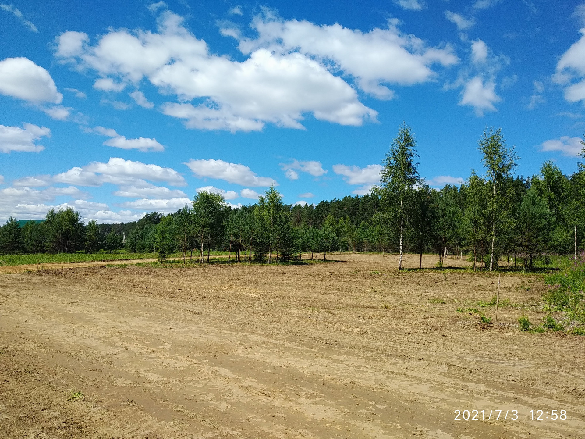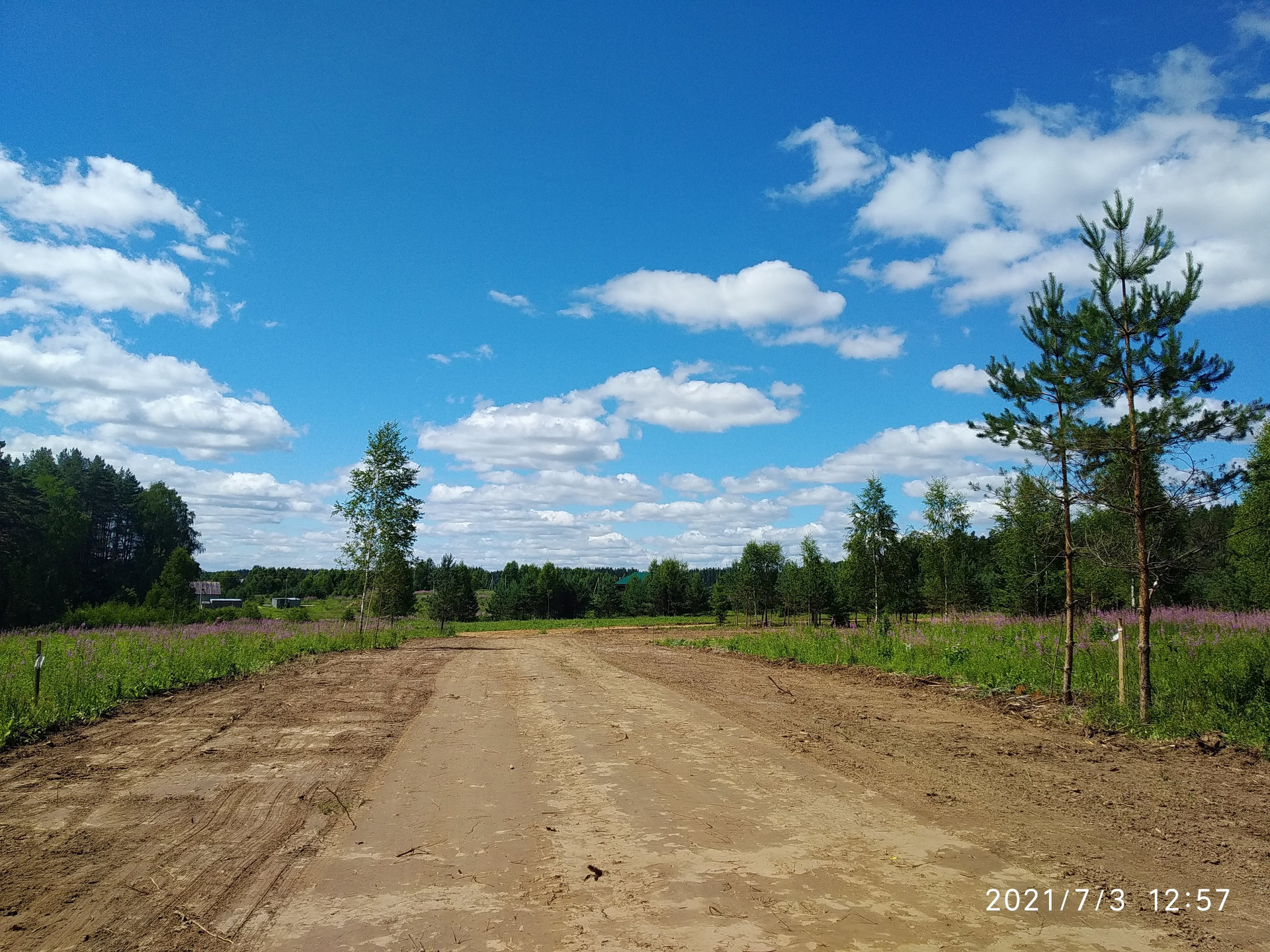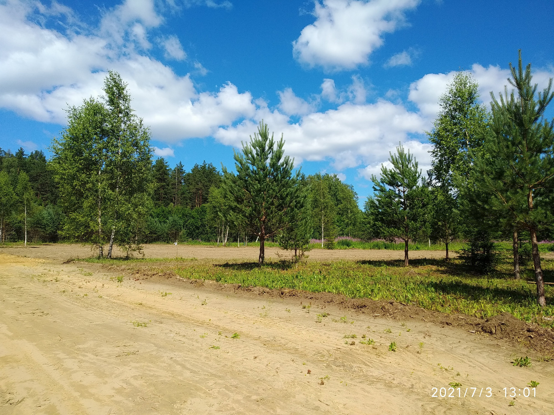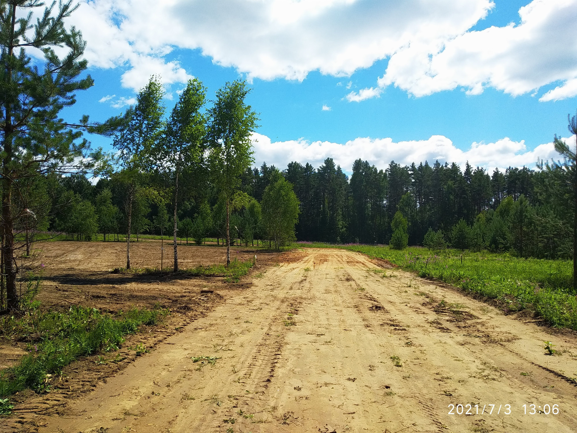 При планировании территории мы постарались сохранить уютную деревенскую атмосферу с широкими улицами (15 м), вдоль которых, растут молодые сосны, березы, где-то елочки. Предусмотрено благоустройство детской площадки с выходом в лесной массив, грунтовых дорог.