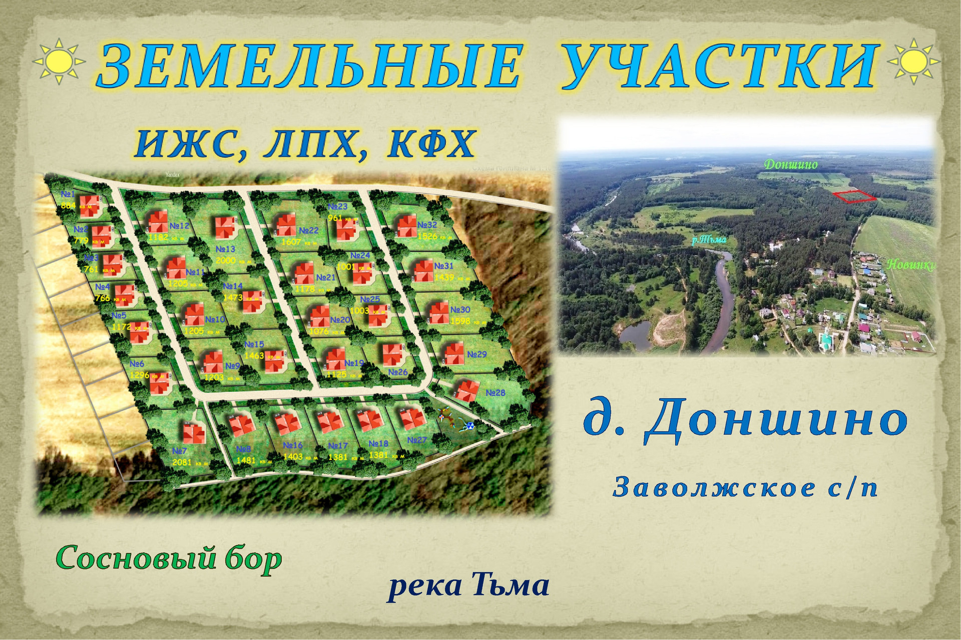 Продаются от 12 сот под ИЖС в границах деревни Доншино Заволжского сельского поселения Калининского района Тверской области.