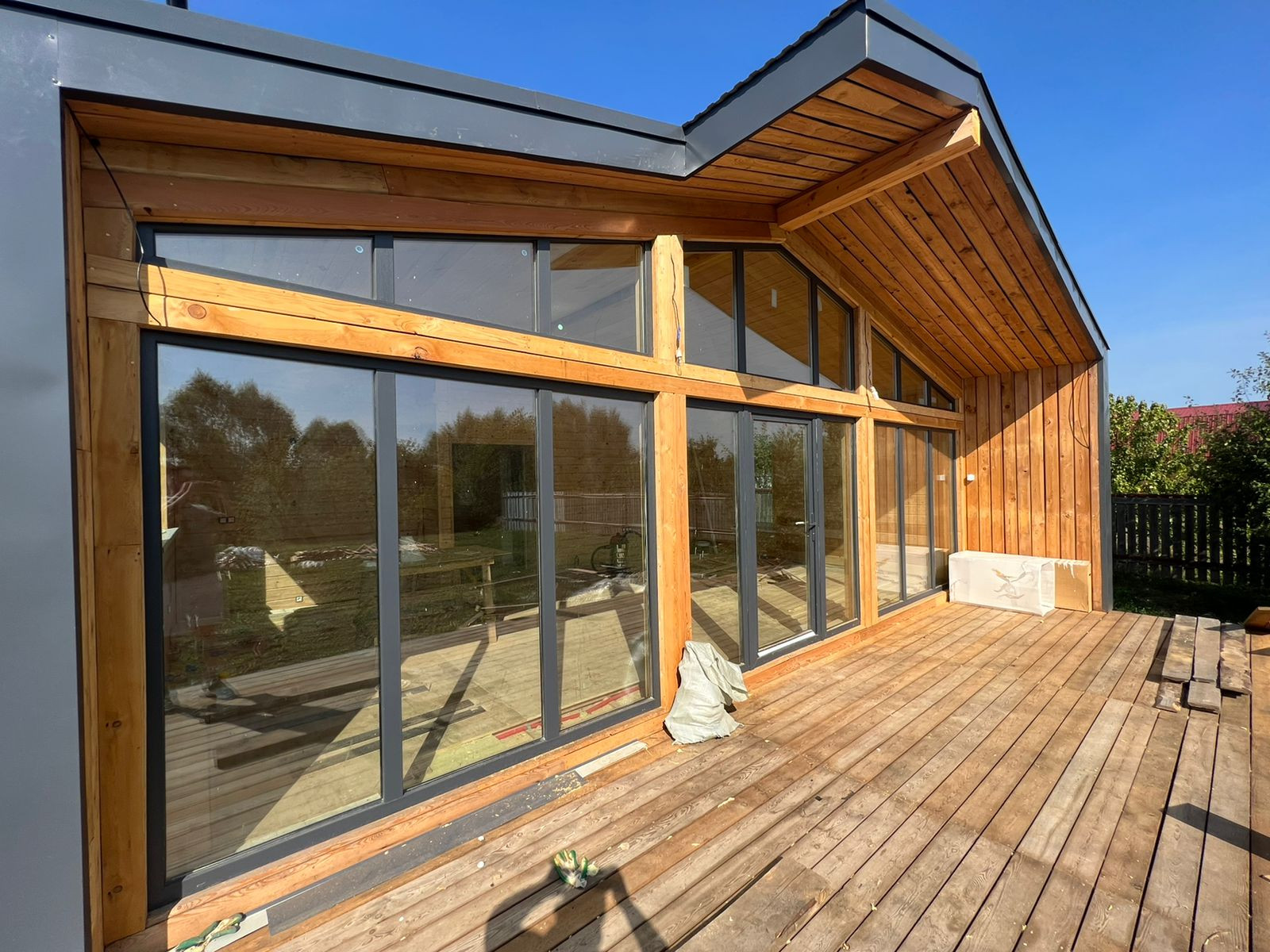 - Вентилируемый фасад из профнастила и натуральной лиственницы