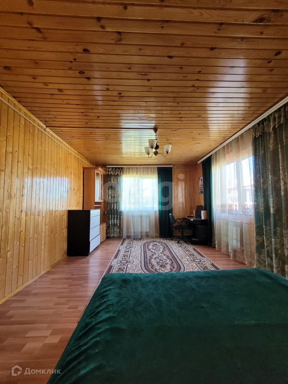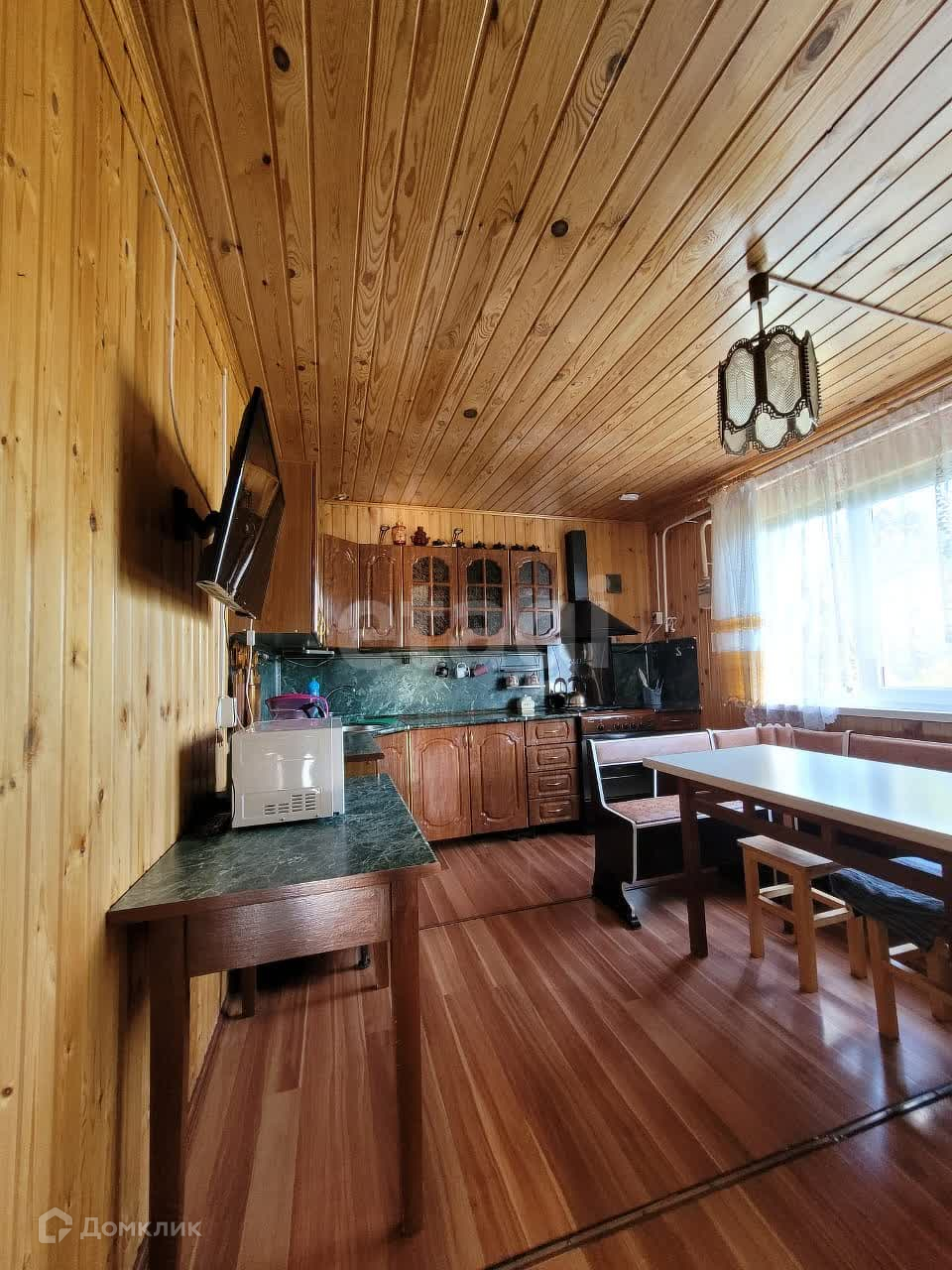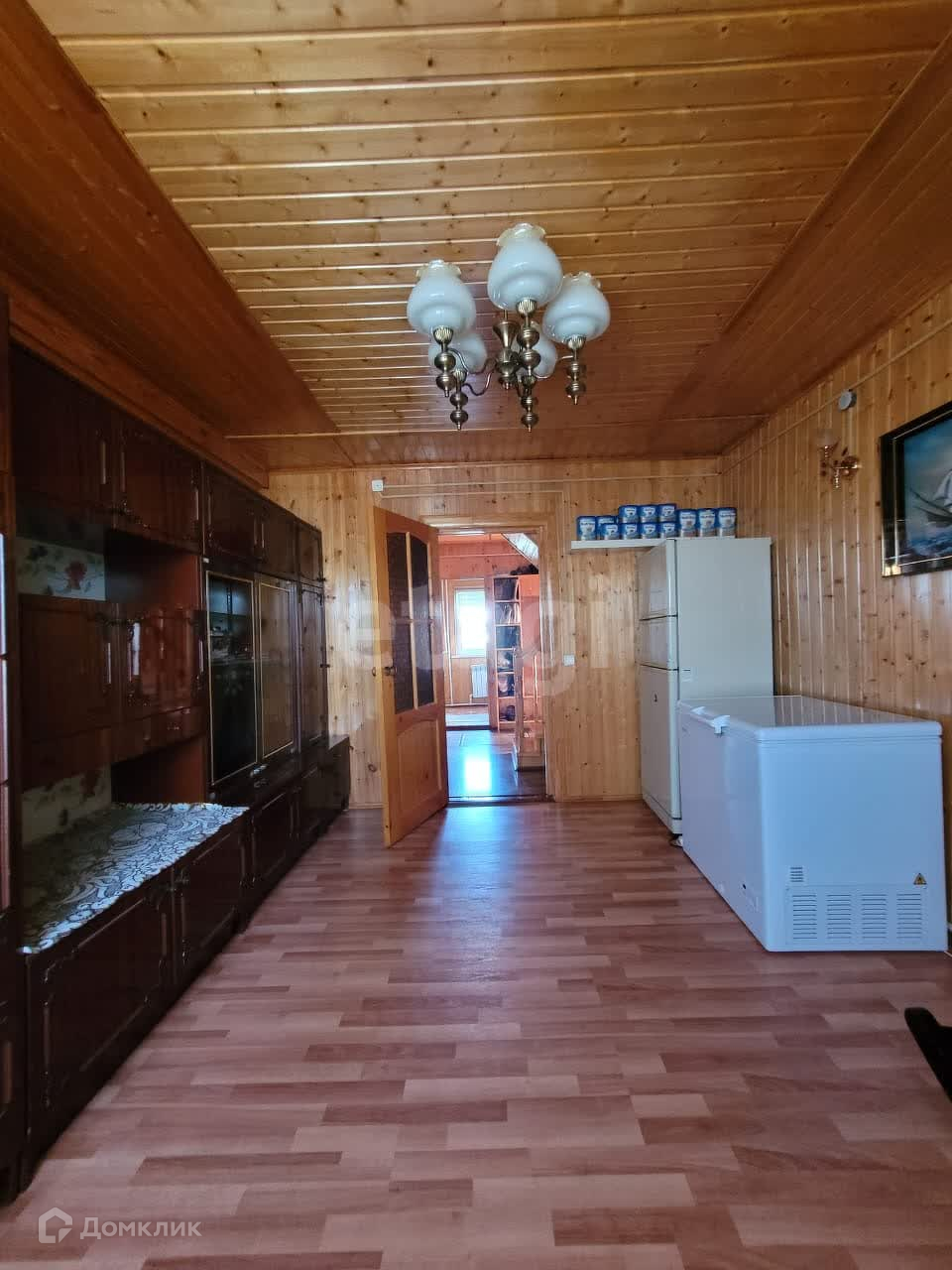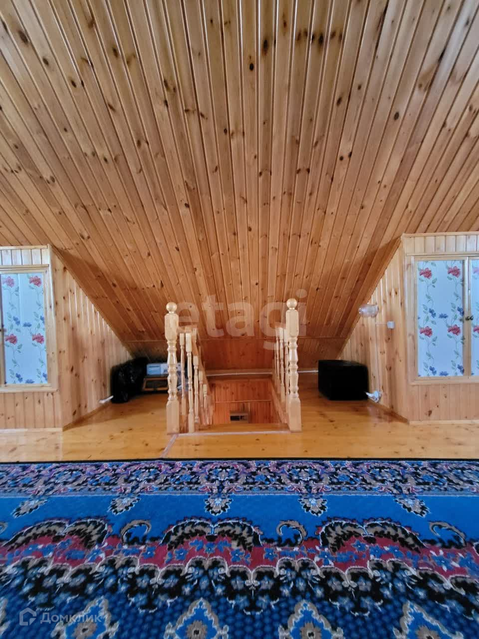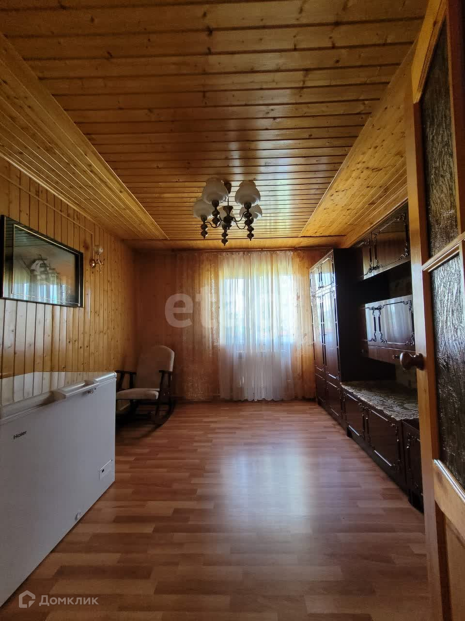 Дом изнутри обшит евровагонкой, на полу ламинат. Общая площадь первого этажа 95 м2, второй этаж 50 м2. На первом этаже находится зал 21,9 м2, спальня 13,6 м2, кухня 12,8 м2, прихожая 10,1 м2, санузел 5,3 м2. В доме остается практически вся мебель и техника. В дом заведены все коммуникации: центральная вода, газ, электричество. На участке есть скважина.