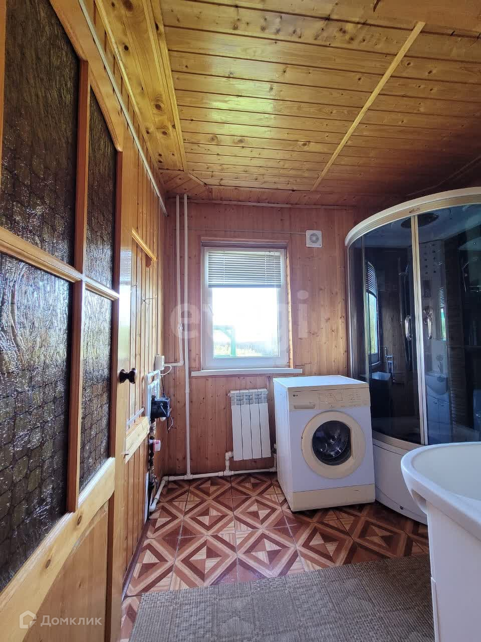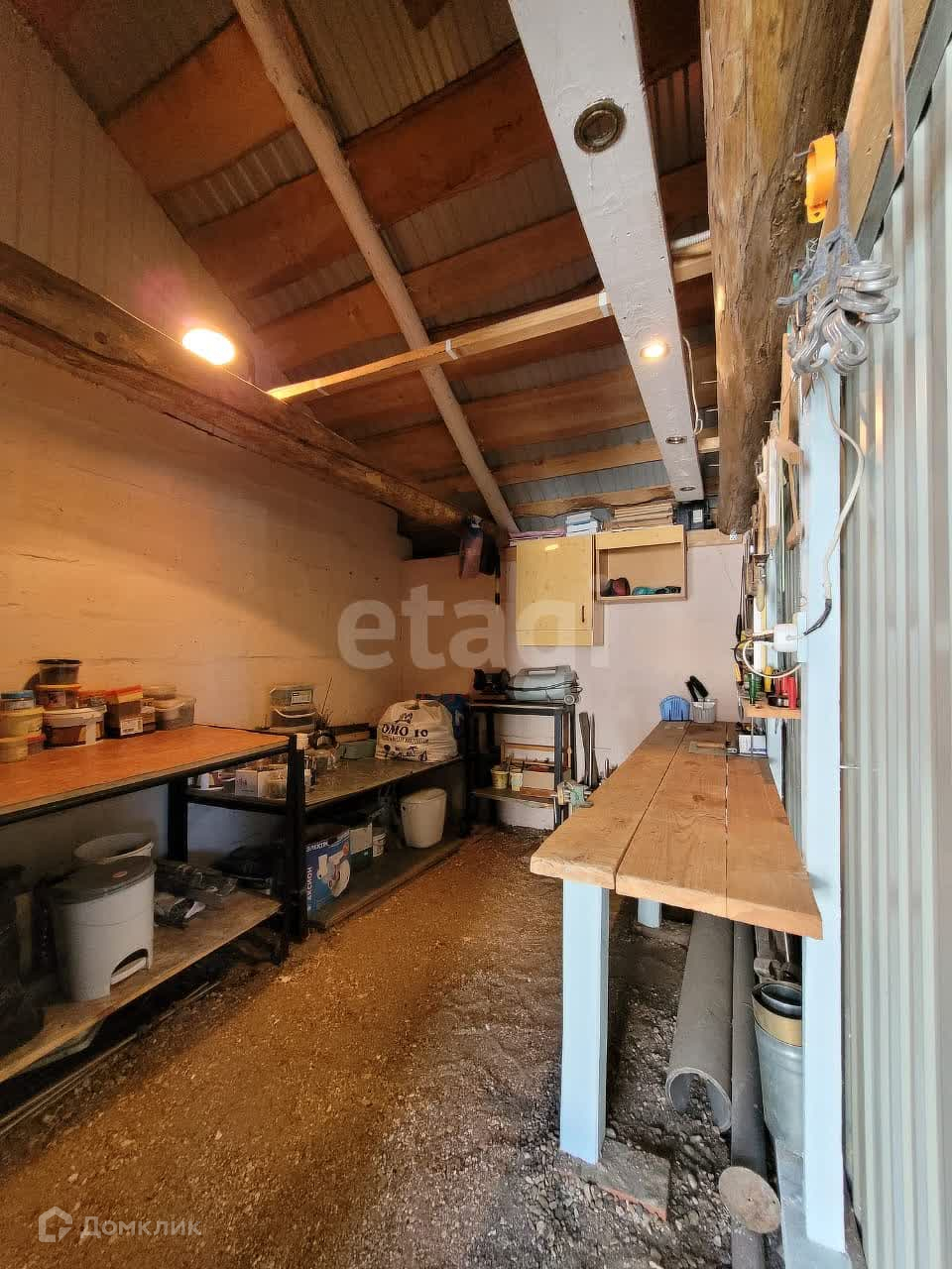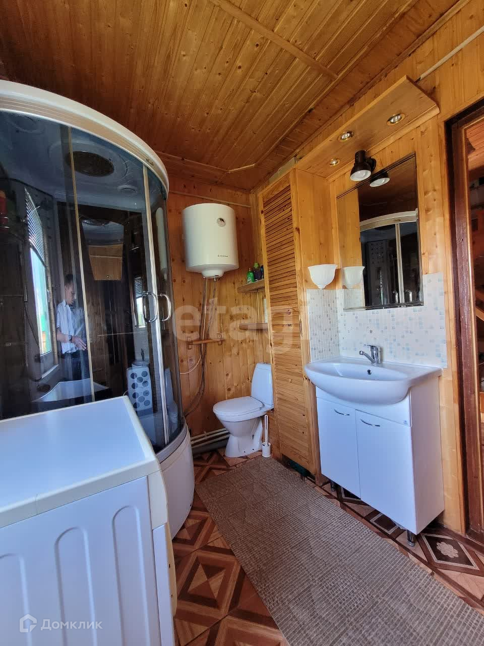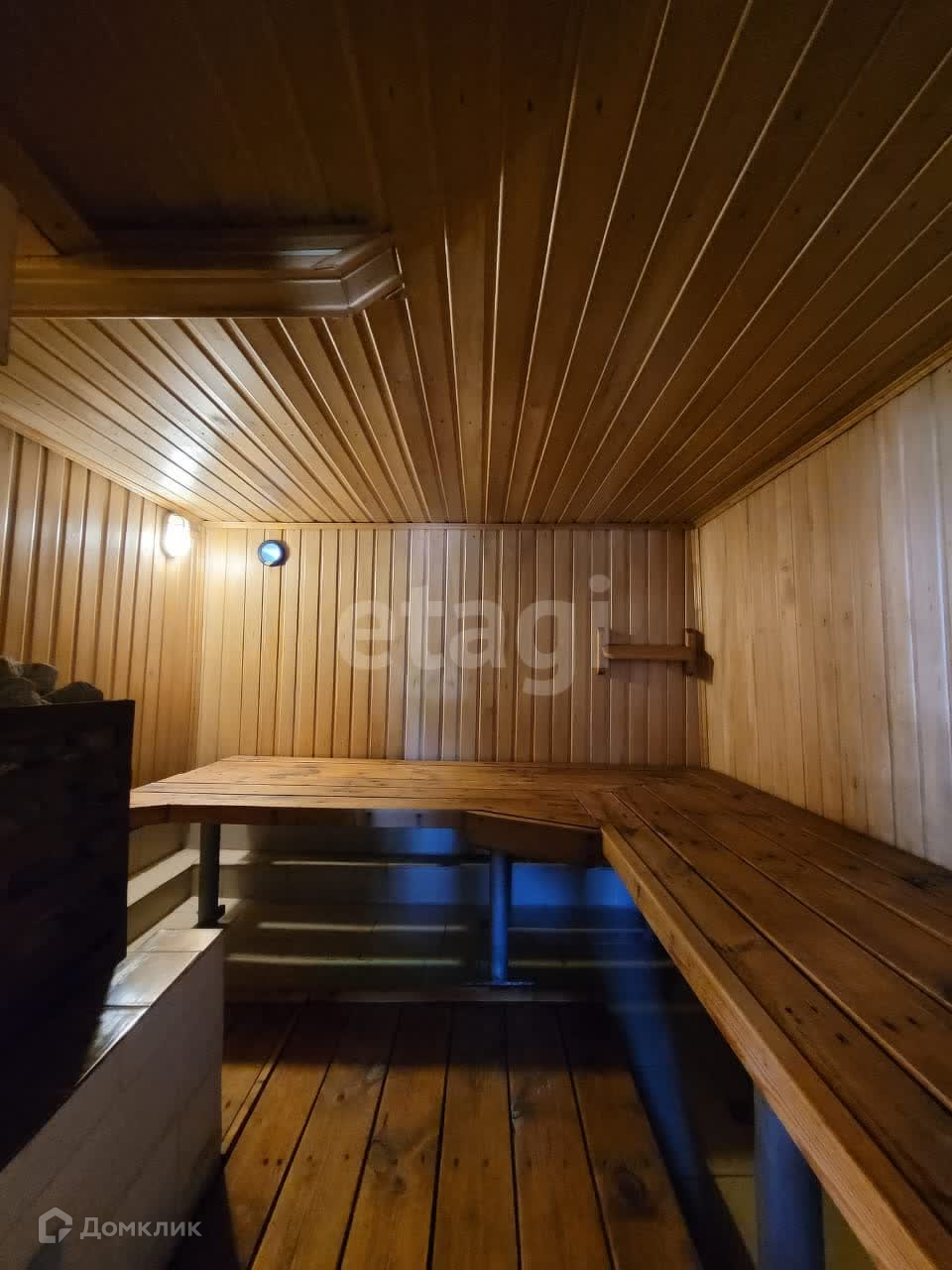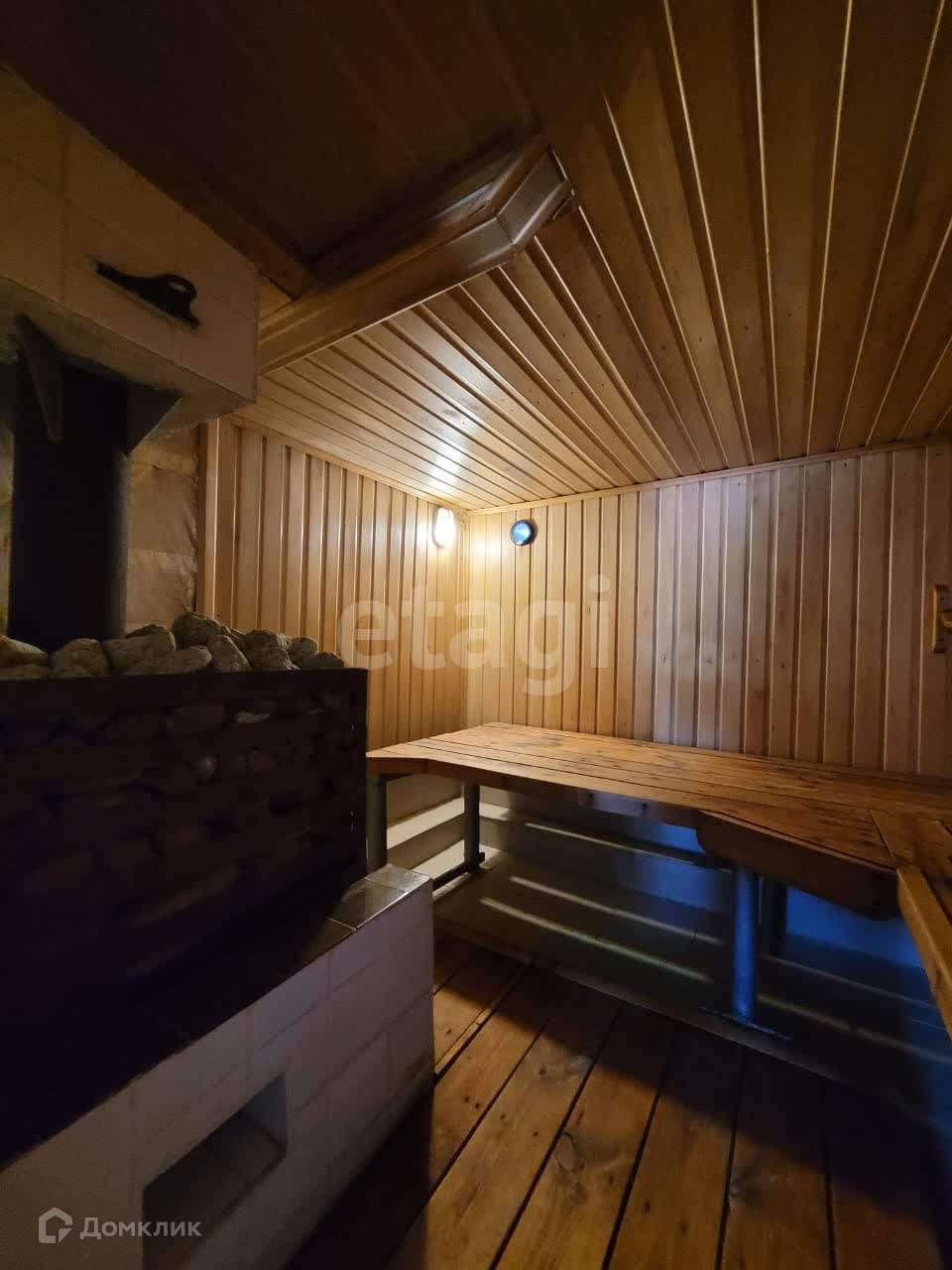 Дом изнутри обшит евровагонкой, на полу ламинат. Общая площадь первого этажа 95 м2, второй этаж 50 м2. На первом этаже находится зал 21,9 м2, спальня 13,6 м2, кухня 12,8 м2, прихожая 10,1 м2, санузел 5,3 м2. В доме остается практически вся мебель и техника. В дом заведены все коммуникации: центральная вода, газ, электричество. На участке есть скважина.