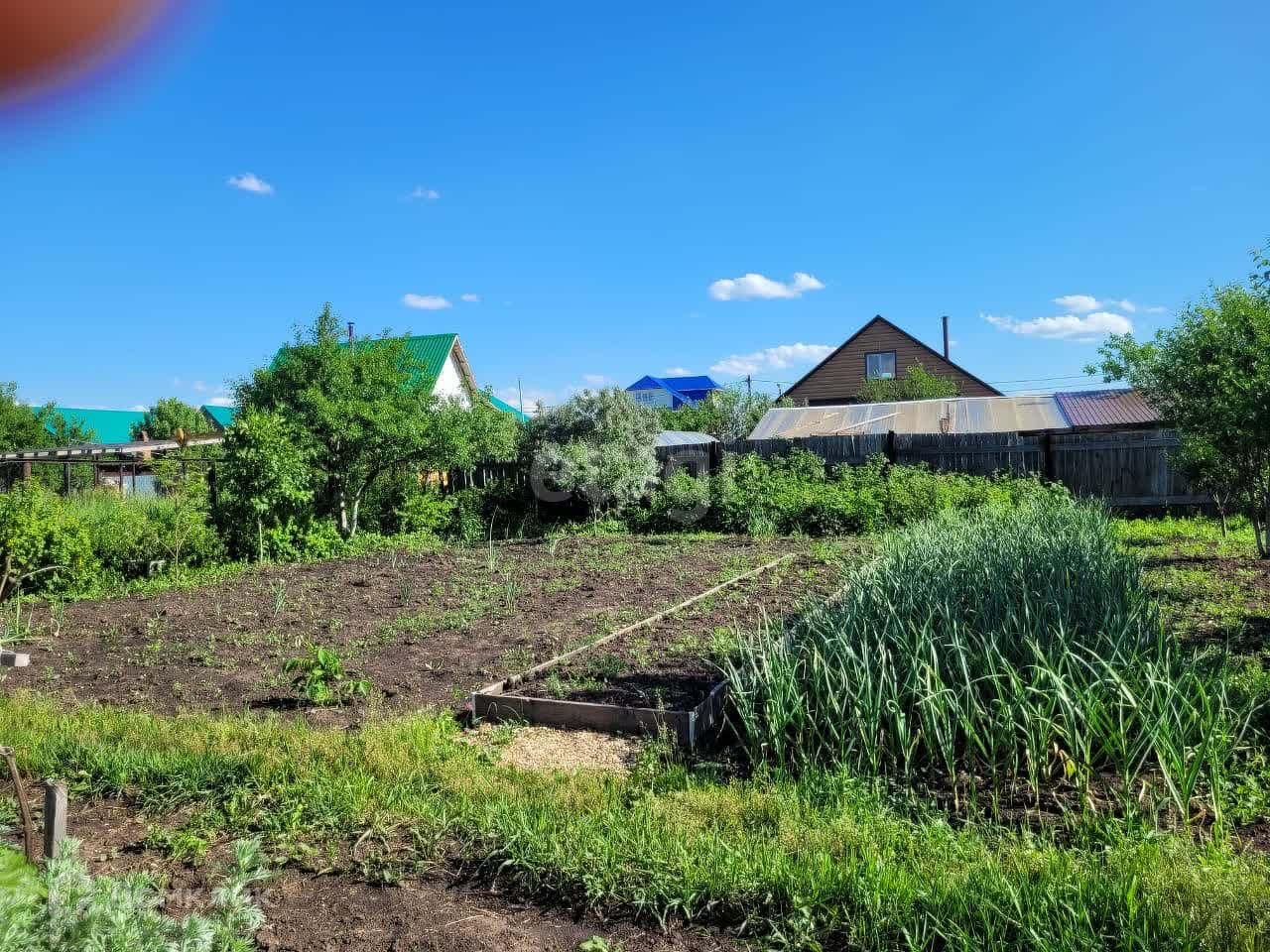 Земельный участок 10 соток правильной формы, облагорожен, есть плодово-ягодные насаждения: вишня, яблони, слива, виноград, малина, смородина, облепиха, крыжовник.