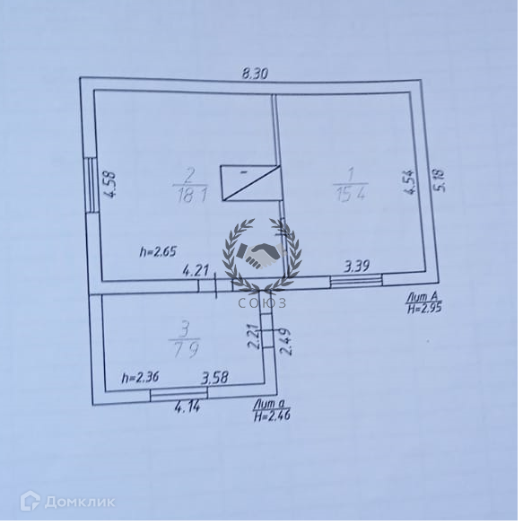 На первом этаже: кухня 18.1 кв.м, комната 15.4 кв.м, веранда 7,9 кв.м. Общая площадь с верандой 41.4 кв.м.