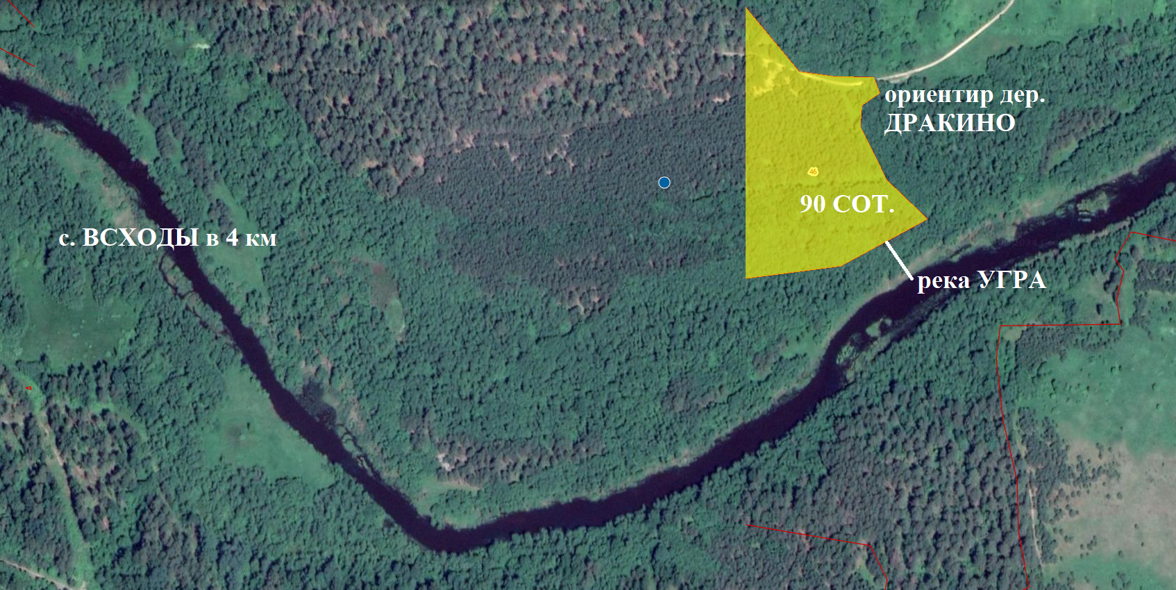S=90 сот. с КН 67:21:0020103:46 (земли населенных пунктов, для ИЖС). На берегу реки Угры. До села Всходы (школа, магазины, ФАП) 5 км.