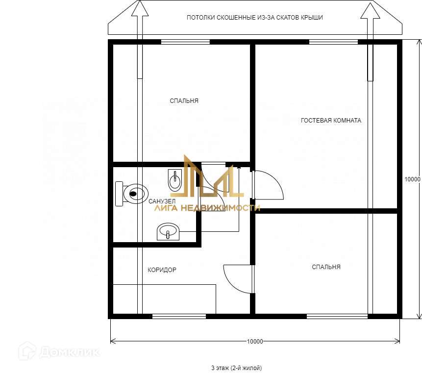 2 этаж: три жилых комнаты, санузел.