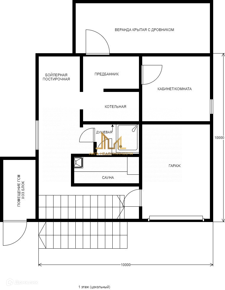 Цокольный этаж: сауна, душевая, бойлерная/постирочная, котельная, комната свободного назначения, гараж.