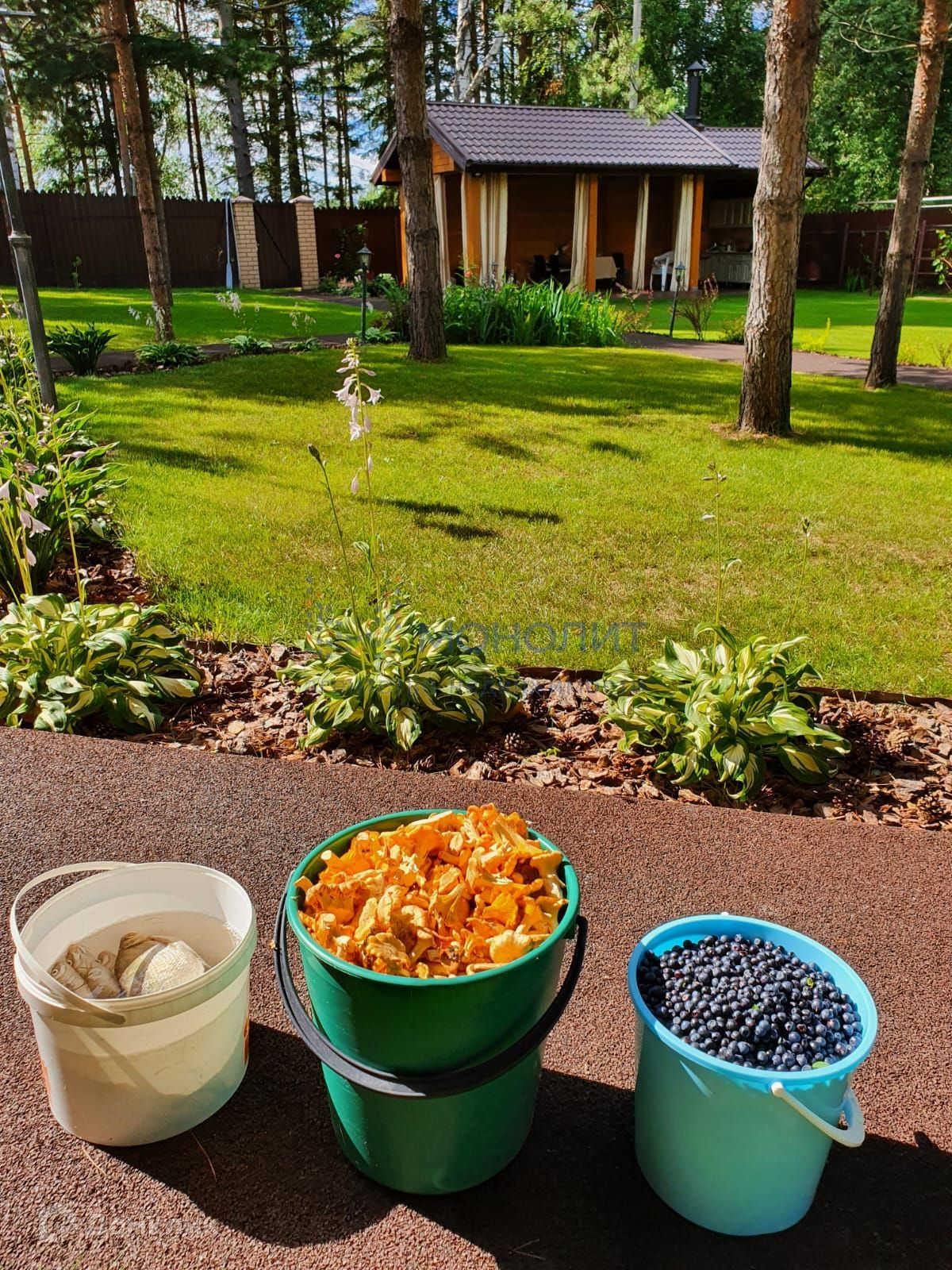 По участку: 21 сотка; молодые сосны между которыми посажен газон (красивые фото это реальность); между участком и горьковским морем свой огороженный лес из вековых сосен; свой пляж (на фото); детский городок; дорожки из армированного бетона с покрытием из бархатной спортивной крошки; освещение дорожек; 6 грядок под заказ в цвет забора; теплица за домом (спрятали для красоты); пергола с виноградом; забор из фигурного дорогого профнастила с некоторыми кирпичными столбами; уличная мебель Corfu из пластикового ротанга; озеленение цветами, барбарисом, виноградом и тп.