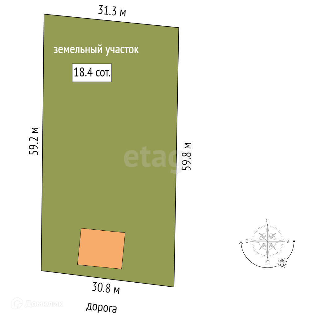 Большой участок 18,4 сотки, кроме дома на нем располагаются хозпостройки и теплица.