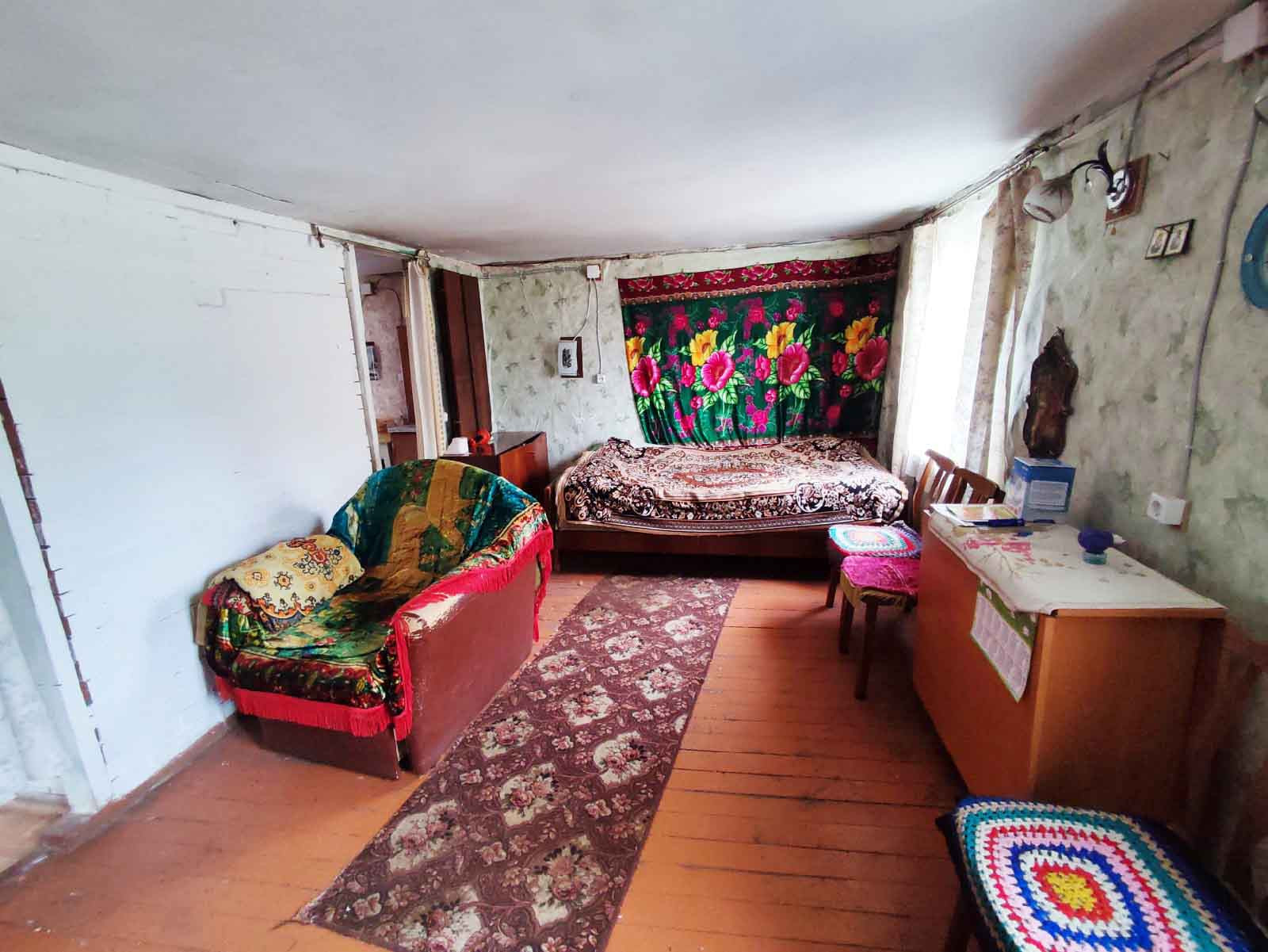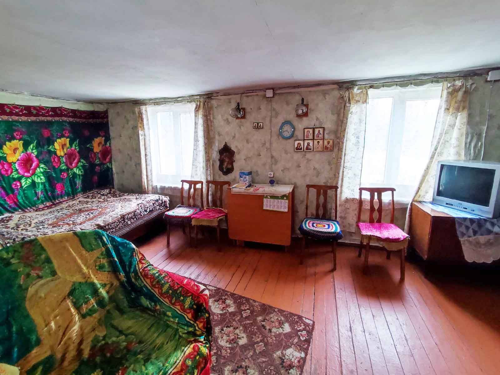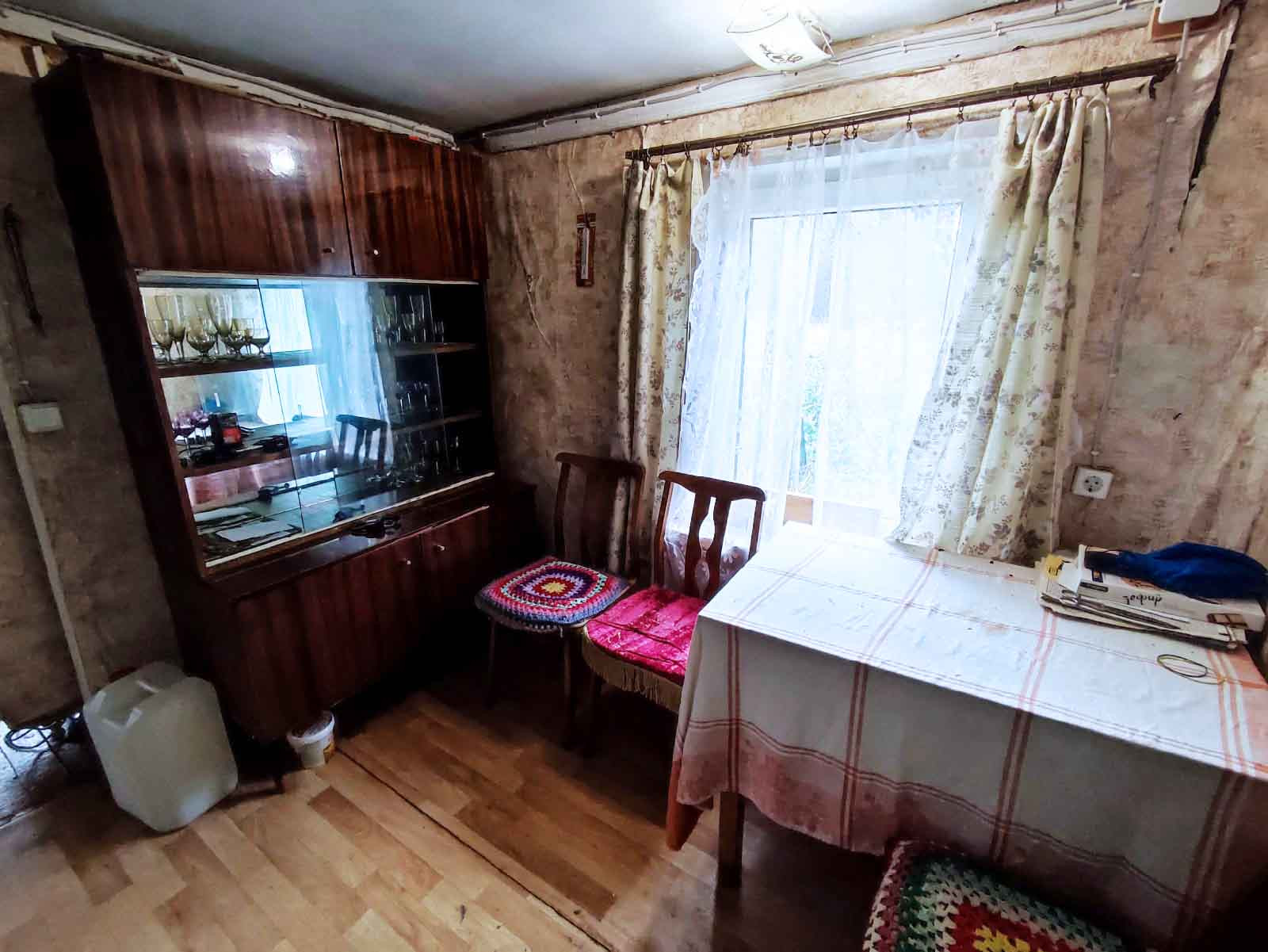 Дом одноэтажный, рубленный, очень теплый, общая площадь  40 кв.м., кухня-столовая и комната, состояние  обычное.