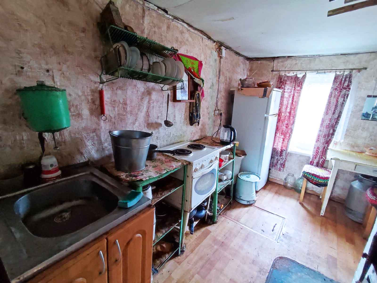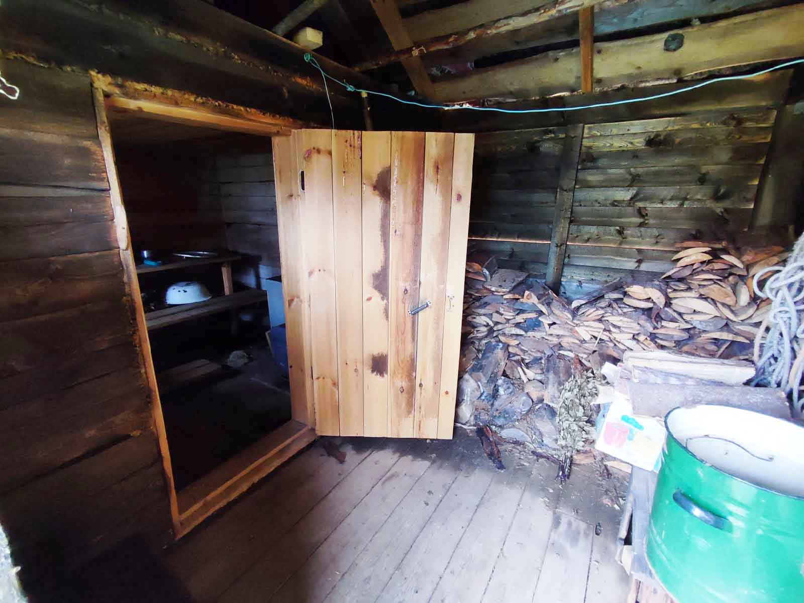 Есть просторный подпол, можно хранить заготовки. Имеется двор, раньше держали коз, сейчас там хранятся дрова.