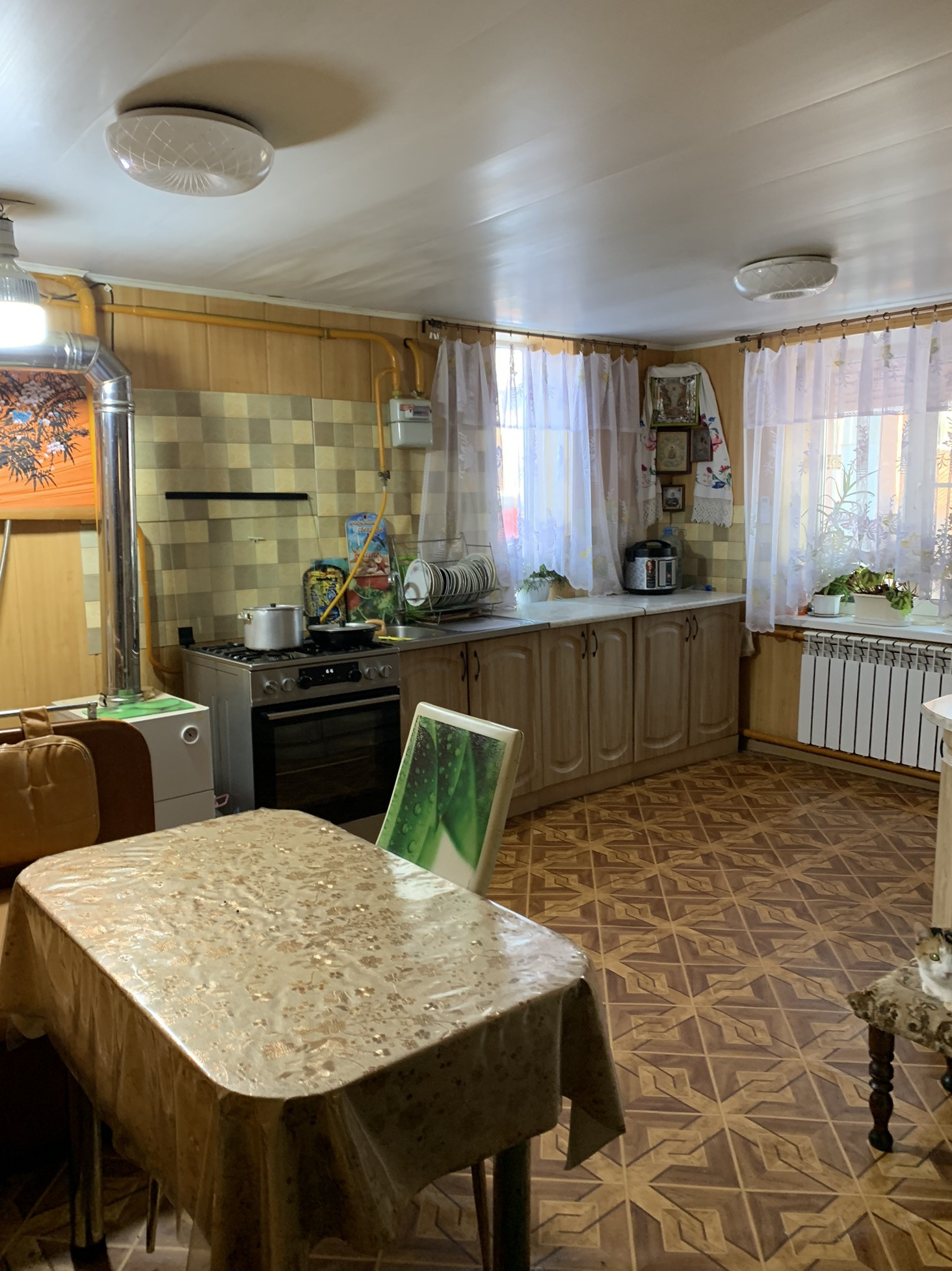 ОТопление газовое (центральное), на всякий случай есть автономный котёл, с/у раздельный, подключена стиральная машина и посудомоечная, в доме 2 кондиционера