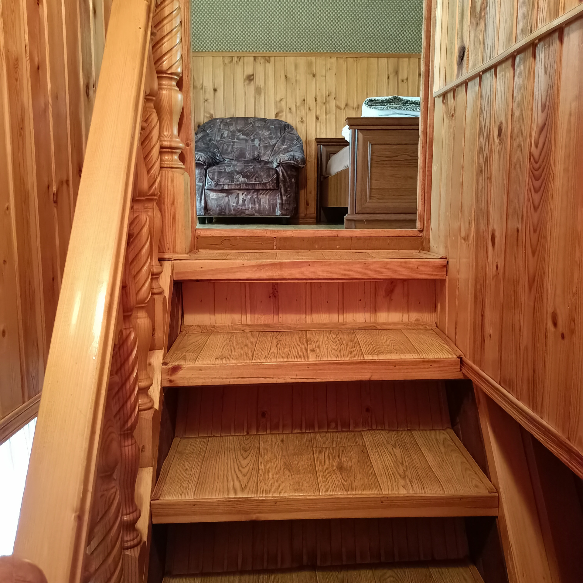 2 этаж: 4 спальни (7 спальных мест). Одна спальня с эркером. Лестница закрывается защелкой для безопасности детей.