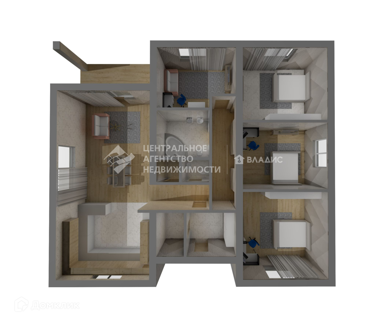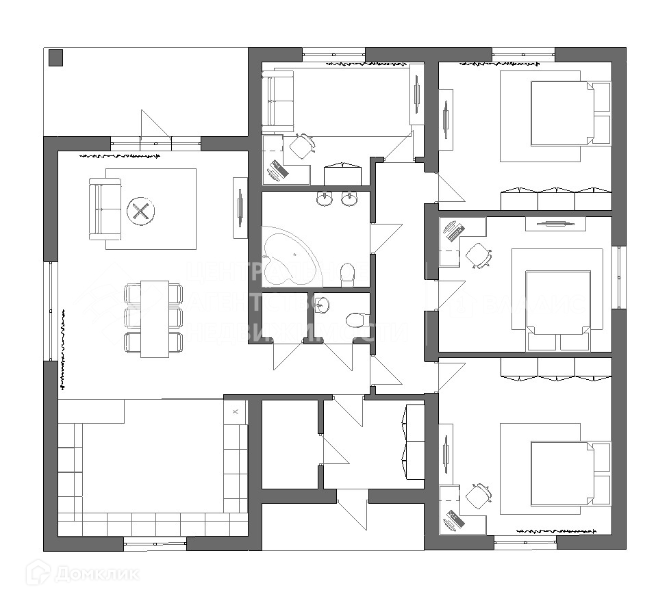 ⁃ три спальни,