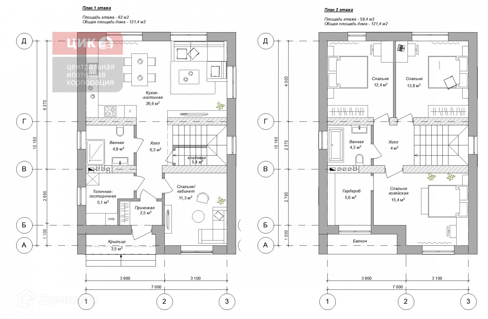 Общая площадь 121.4 м2