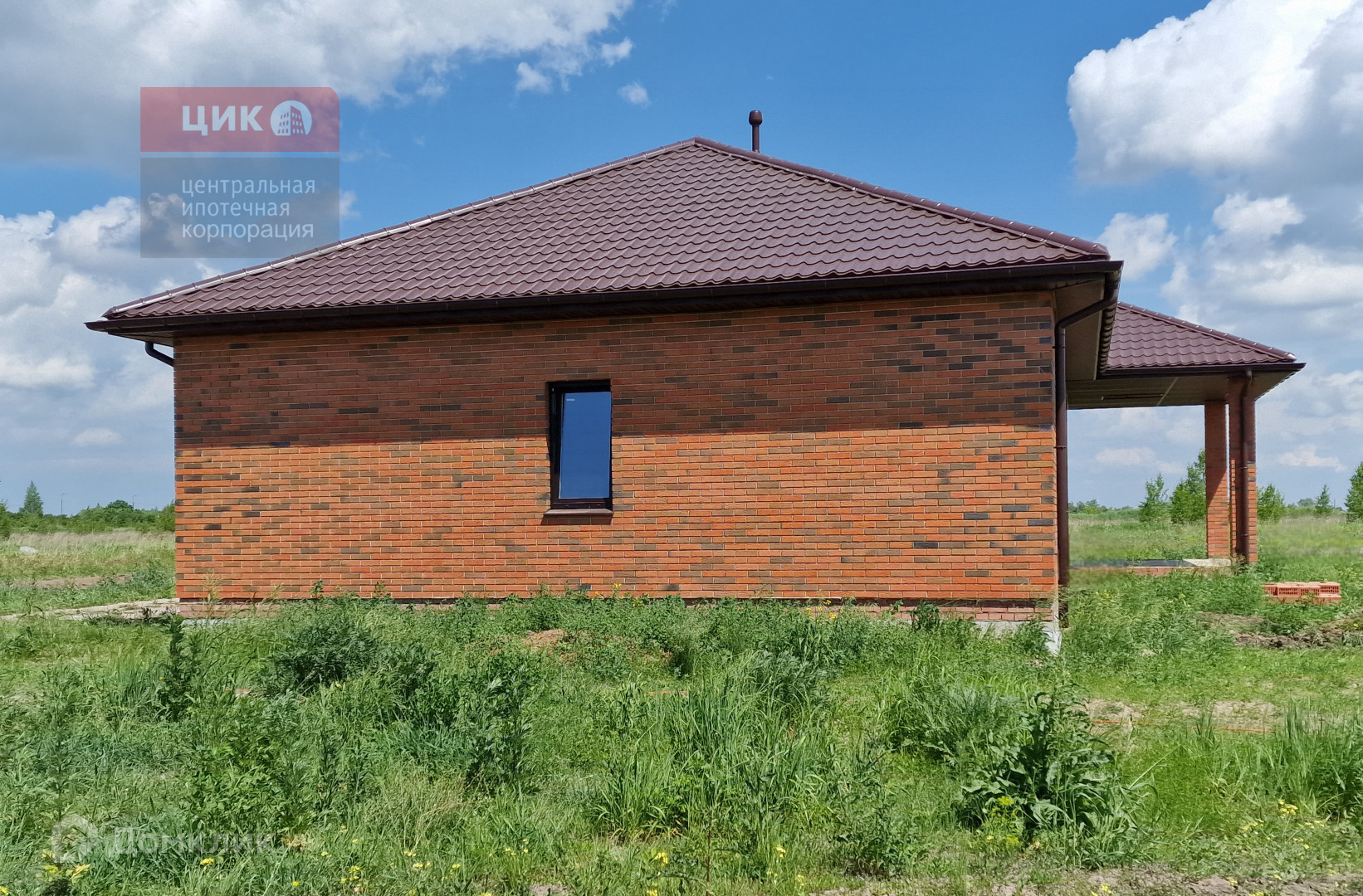 Дом построен из пеноблоков, утеплен и облицован декоративным кирпичом. Крыша-мягкая черепица, окна-ПВХ.