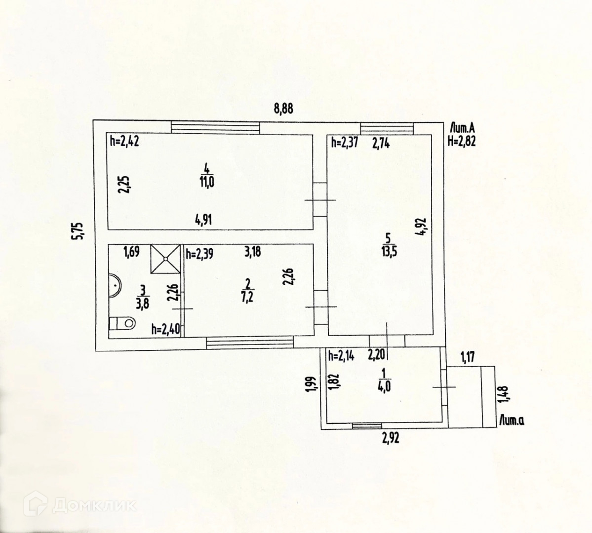 В доме две жилые комнаты 13.5 и 11 кв.м., отдельно прихожая 4 кв.м. и кухня 7,2 кв.м. Санузел в доме.