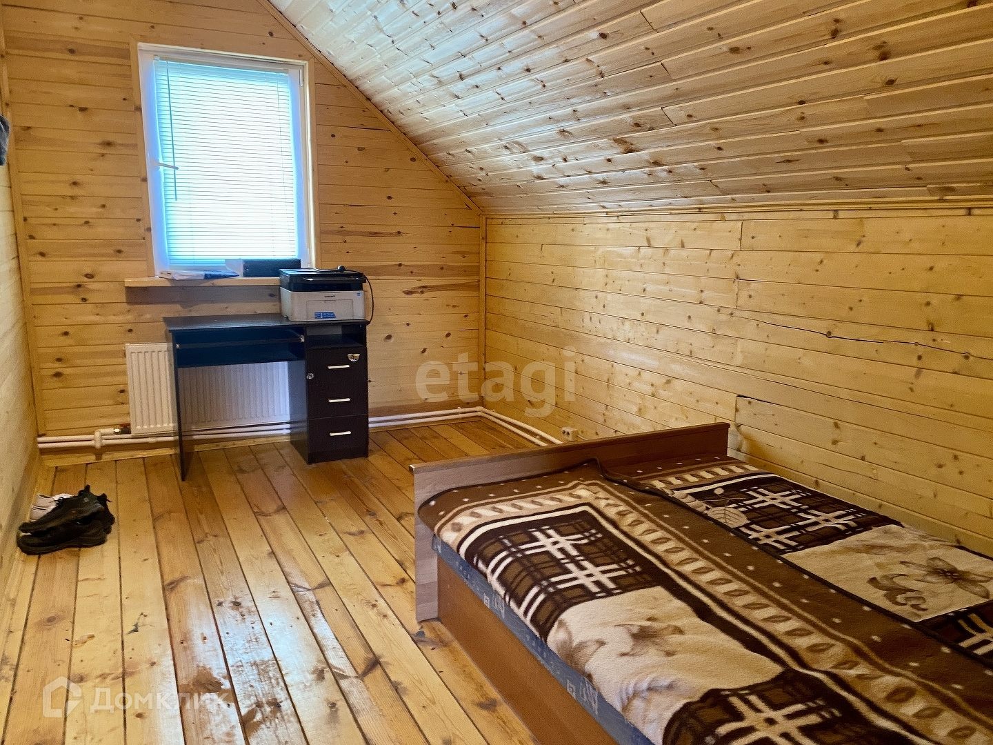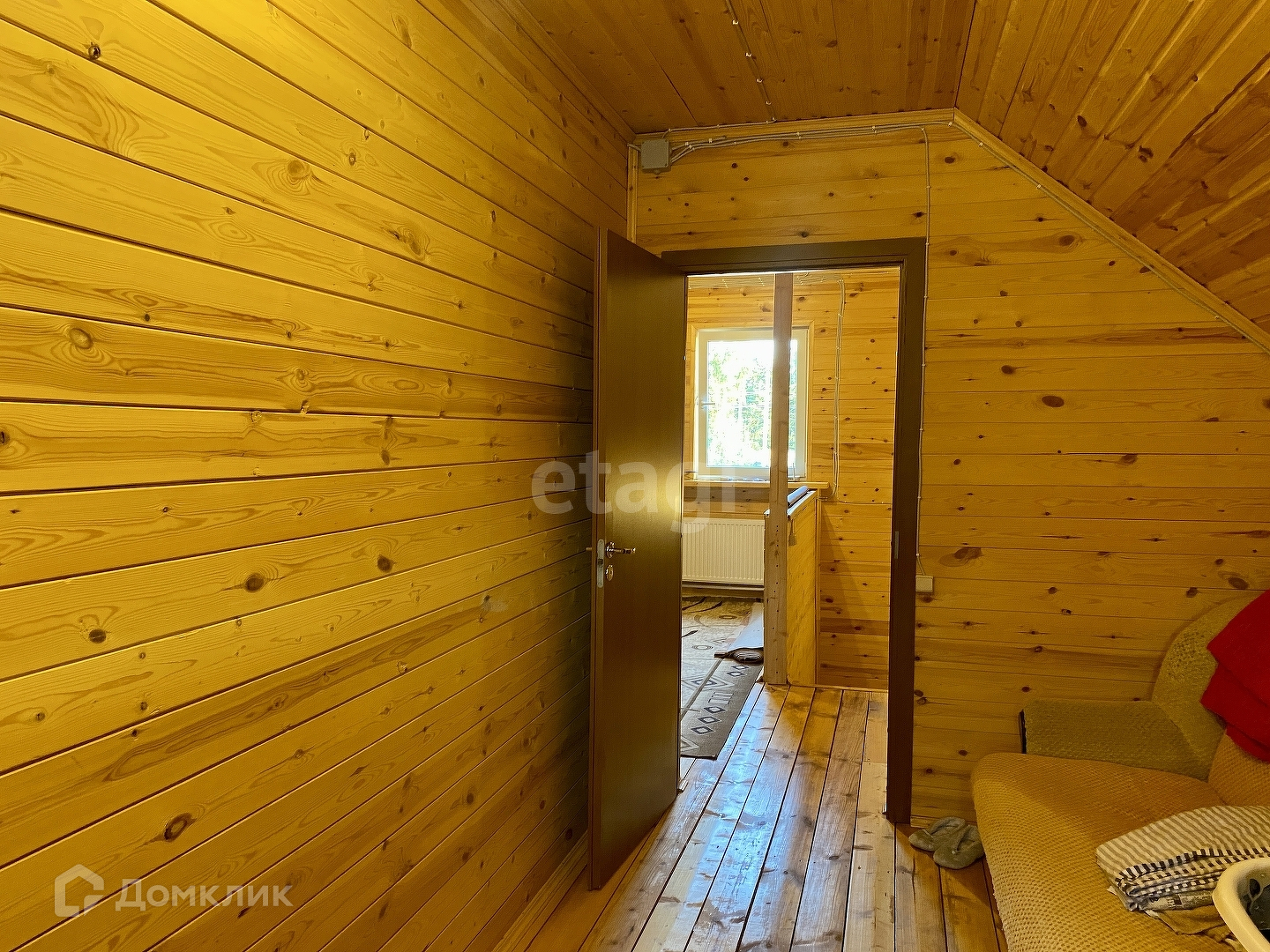 Дом построен в 2016 году, из бруса, утеплен и обшит сайдингом. В доме на первом этаже расположены прихожая, просторная кухня-гостиная, совмещённый санузел. На втором этаже 2 спальные комнаты.