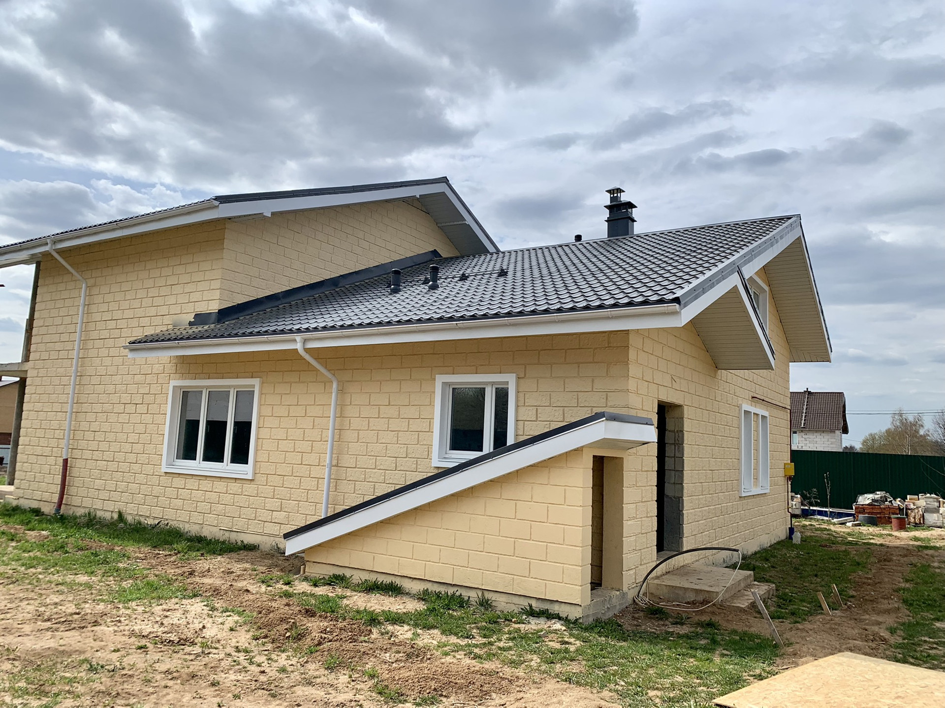 Площадь жилого дома 430 кв. м. Дом без внутренней отделки, построен из полистиролбетонных блоков, окрашен качественной фасадной краской, утеплён, на ленточном железобетонном фундаменте. Перекрытие между первым и вторым этажом устроено из монолитного железобетона. Крыша: металлочерепица, утеплена. Окна Rehau. Планировка: 4 спальных комнаты; кухня 30 кв.м; гостиная 35 кв.м., 2 веранды + небольшой подвал 18 кв.м., с/у; Отдельно стоящее здание:хозблок 15 кв.м. Коммуникации: Подключено электричество 15 кВт, заведен в дом магистральный газ, центральный водопровод. По периметру участка устроена система дренажа.На территории участка плодовые деревья(персики, яблони, груши). Более подробно по телефону! Дом и участок оформлены! Рассмотрим ипотеку и мат.капитал.