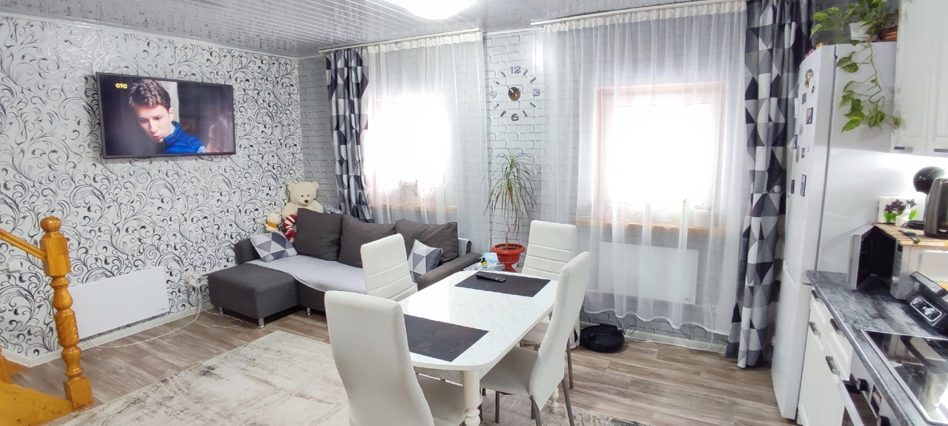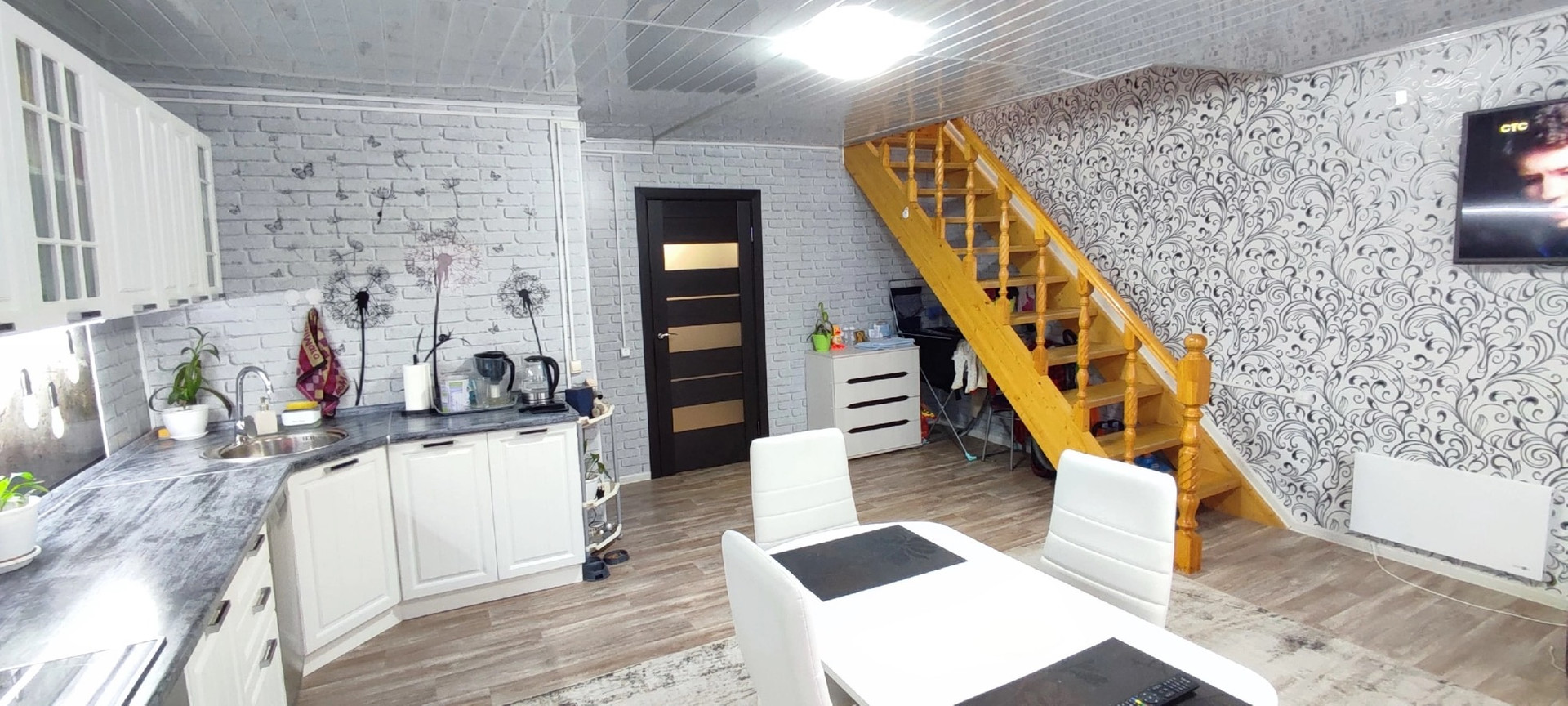 На первом этаже прихожая, большая кухня-гостиная с отличной функциональной и оборудованной кухней, санузел с душевой кабиной, новый бойлер на 100литров, новые тепловые конвекторы.