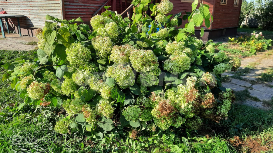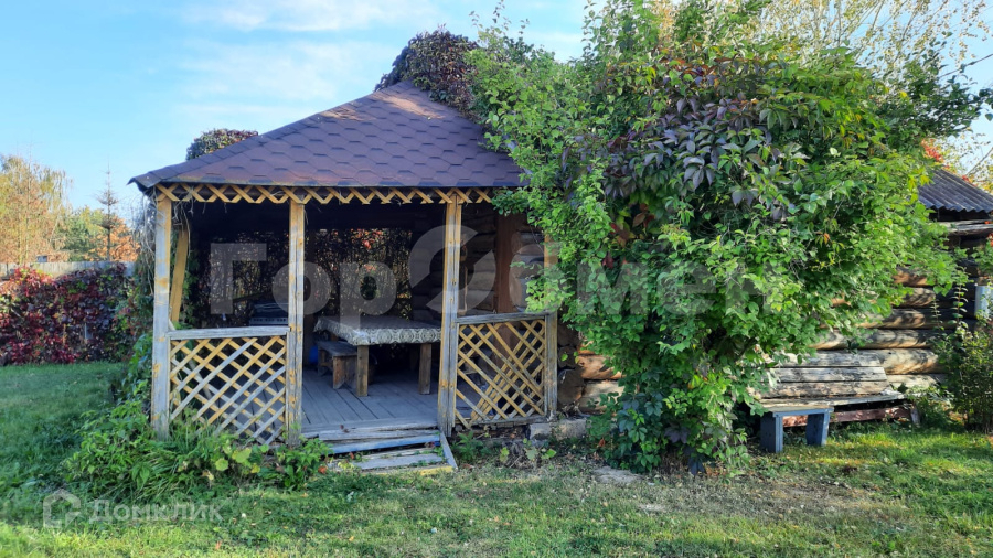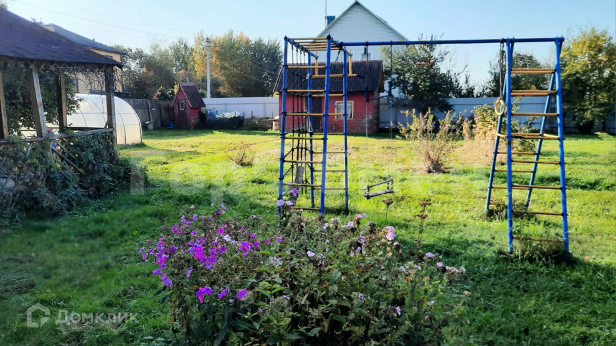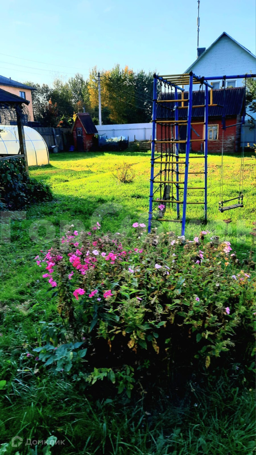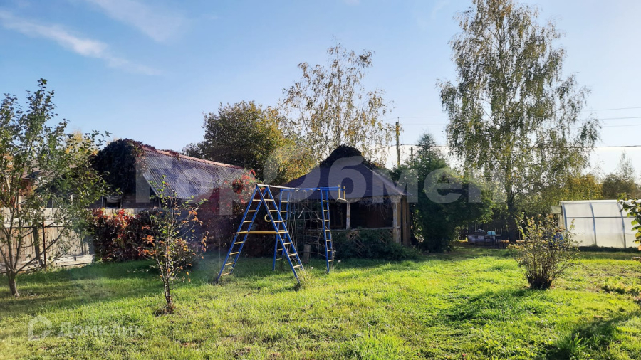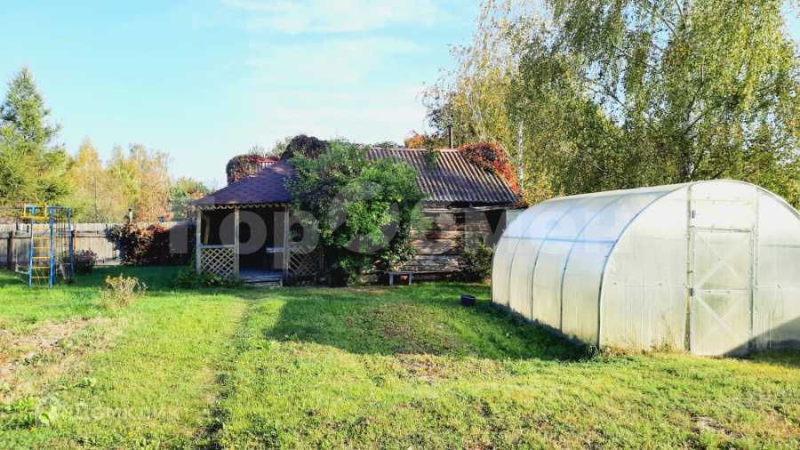 На участке площадка для автомобиля, площадка для разборного бассейна, детская площадка, баня с верандой, теплица, хозблок.