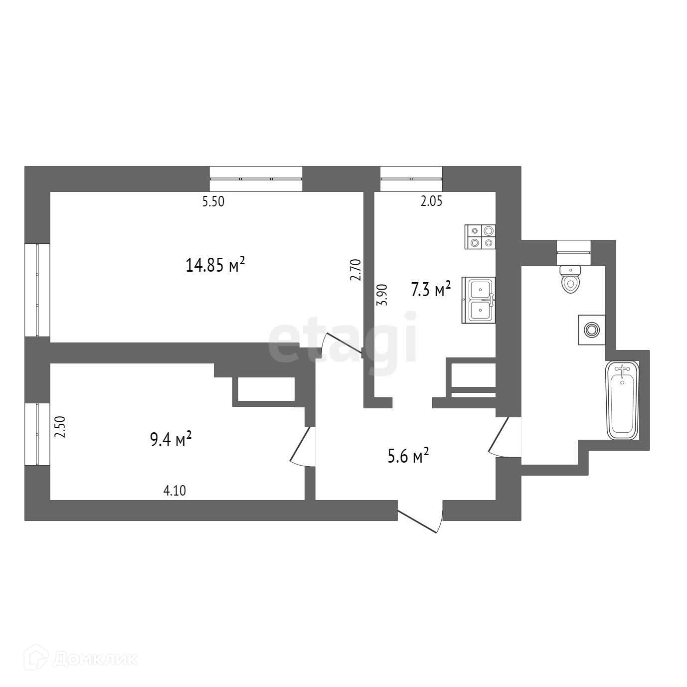 Общая площадь 39.2 м2