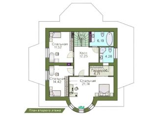 Двухэтажный дом с четырехскатной пирамидальной кровлей. Учитывая, что строение имеет два этажа, коттедж достаточно компактен и поэтому легко впишется даже в небольшой по площади участок. В доме есть все для удобного проживания семьи из 3-4 человек. Отличительной особенностью проекта является полукруглый эркер, проходящий через оба этажа и заканчивающийс... |