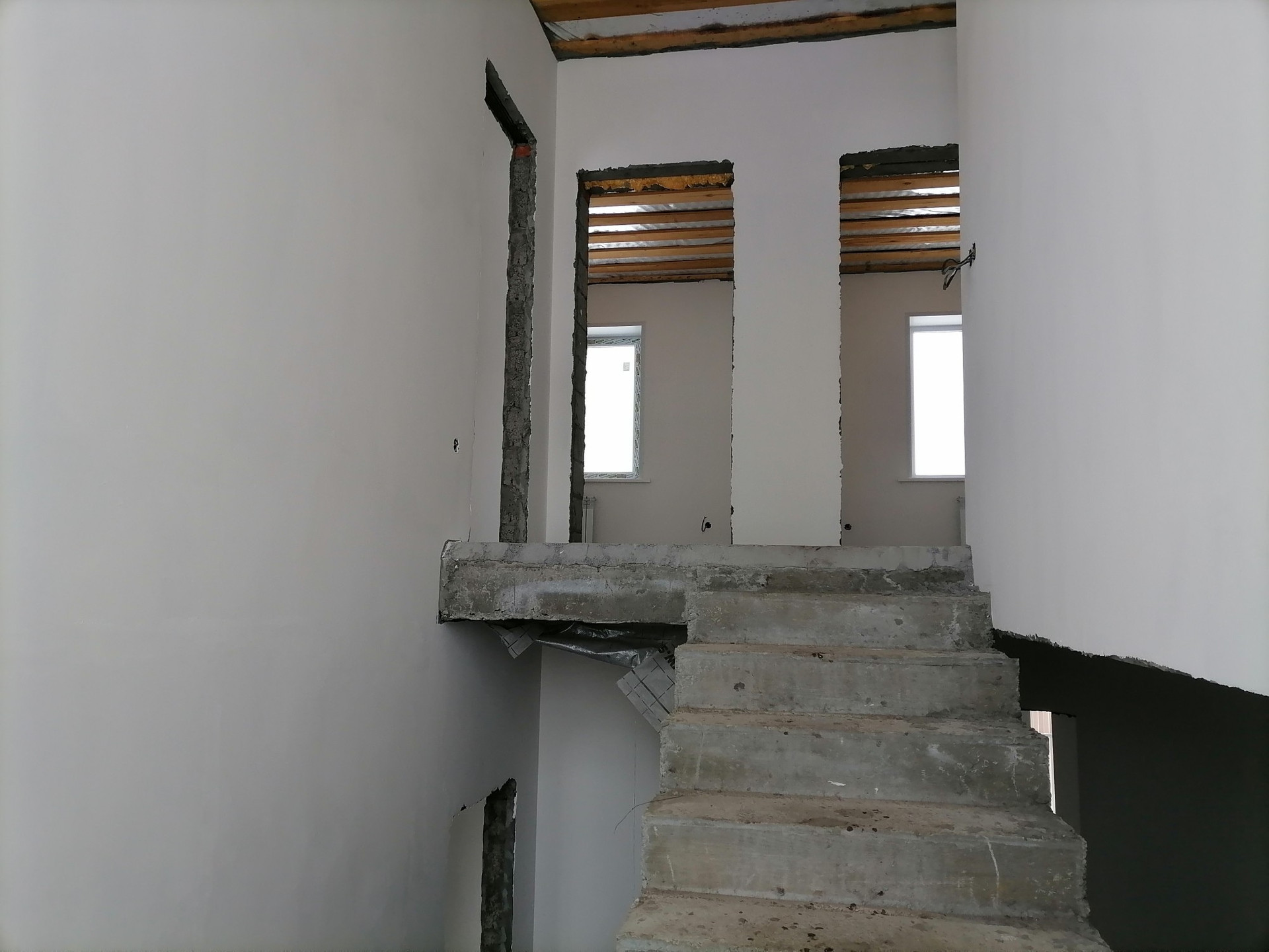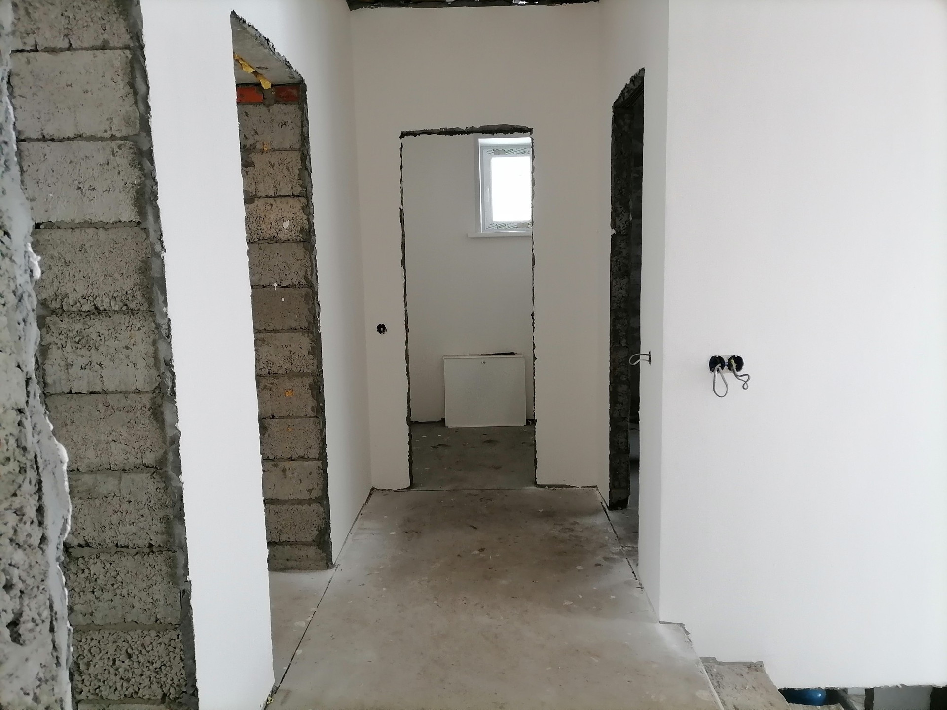Система отопления: 1 этаж тёплый пол, 2 этаж радиаторы(электрокотел), электромонтаж по всему дому, водоотведение:септик 10м3, штукутуркм и стяжка под маяк, Скважина.