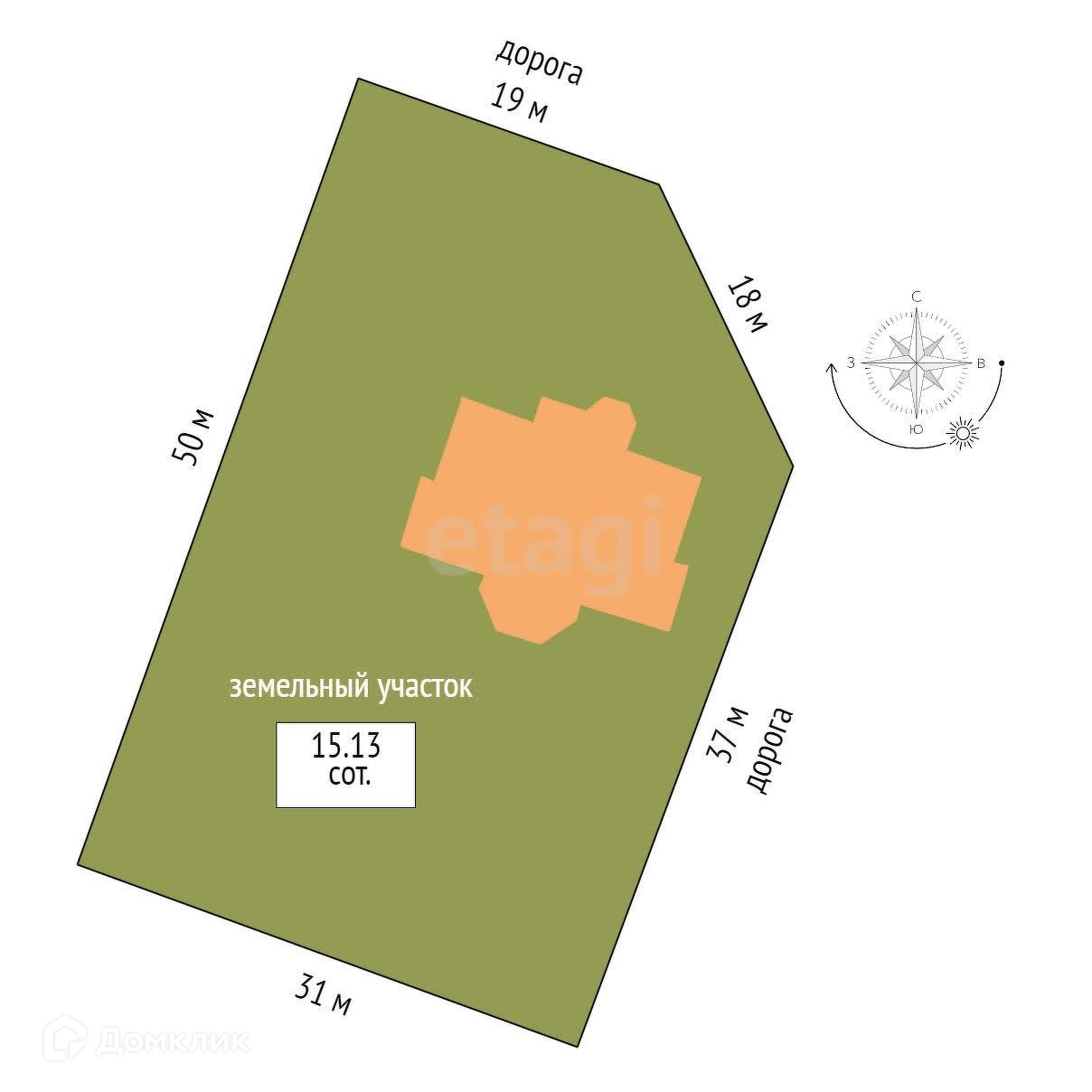Площадь участка 15.13 сот.