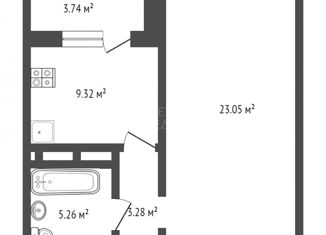Общая площадь: 43 м2