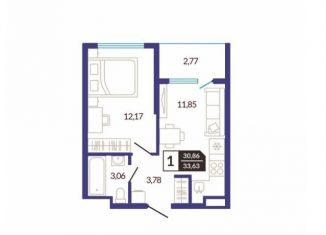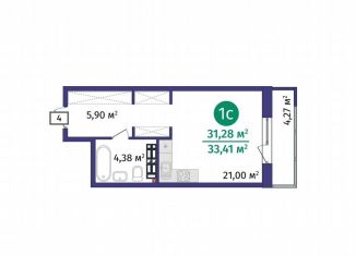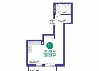 Однокомнатная квартира на продажу, 33.6 м2