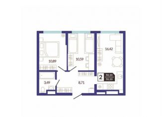 Продается 2-комнатная квартира, 49.5 м2