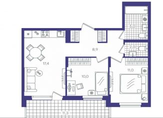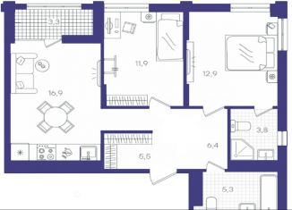 Продажа 2-комнатной квартиры, 54.7 м2