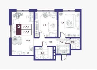 Продам двухкомнатную квартиру, 56.1 м2