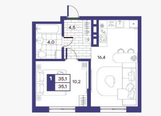 Продажа однокомнатной квартиры, 35.1 м2