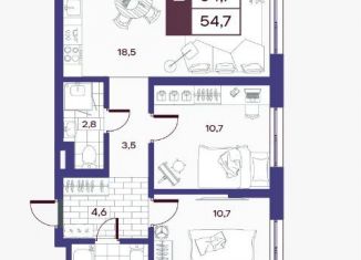 Продажа 2-комнатной квартиры, 54.7 м2